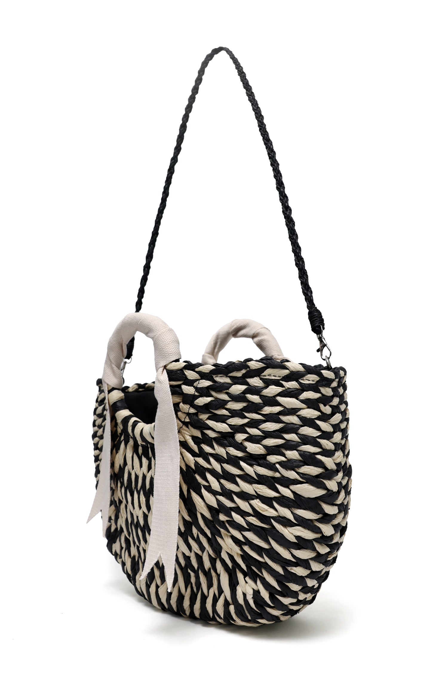 Layered woven strands form a bold dimensional surface. Soft knot handle introduces a relaxed yet elegant character. Spacious interior supports practical daily use. Designed to balance comfort with elevated detailing.