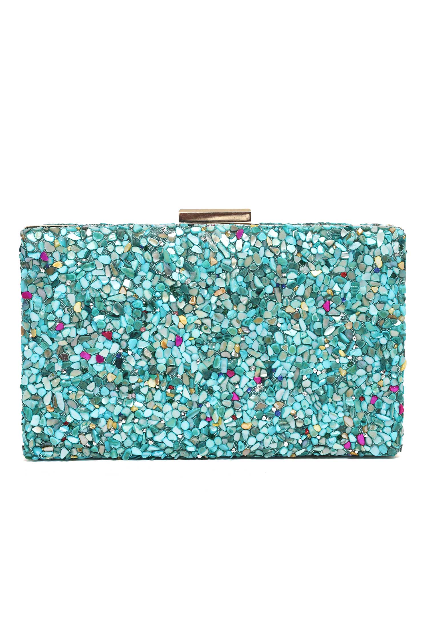 This chic box clutch features an eye-catching pebbled texture, accented with a sleek metallic frame. The structured design includes a top clasp closure and a detachable chain strap for versatile styling. Compact yet spacious enough for essentials, it's a perfect accessory to add a touch of modern elegance to your evening attire.