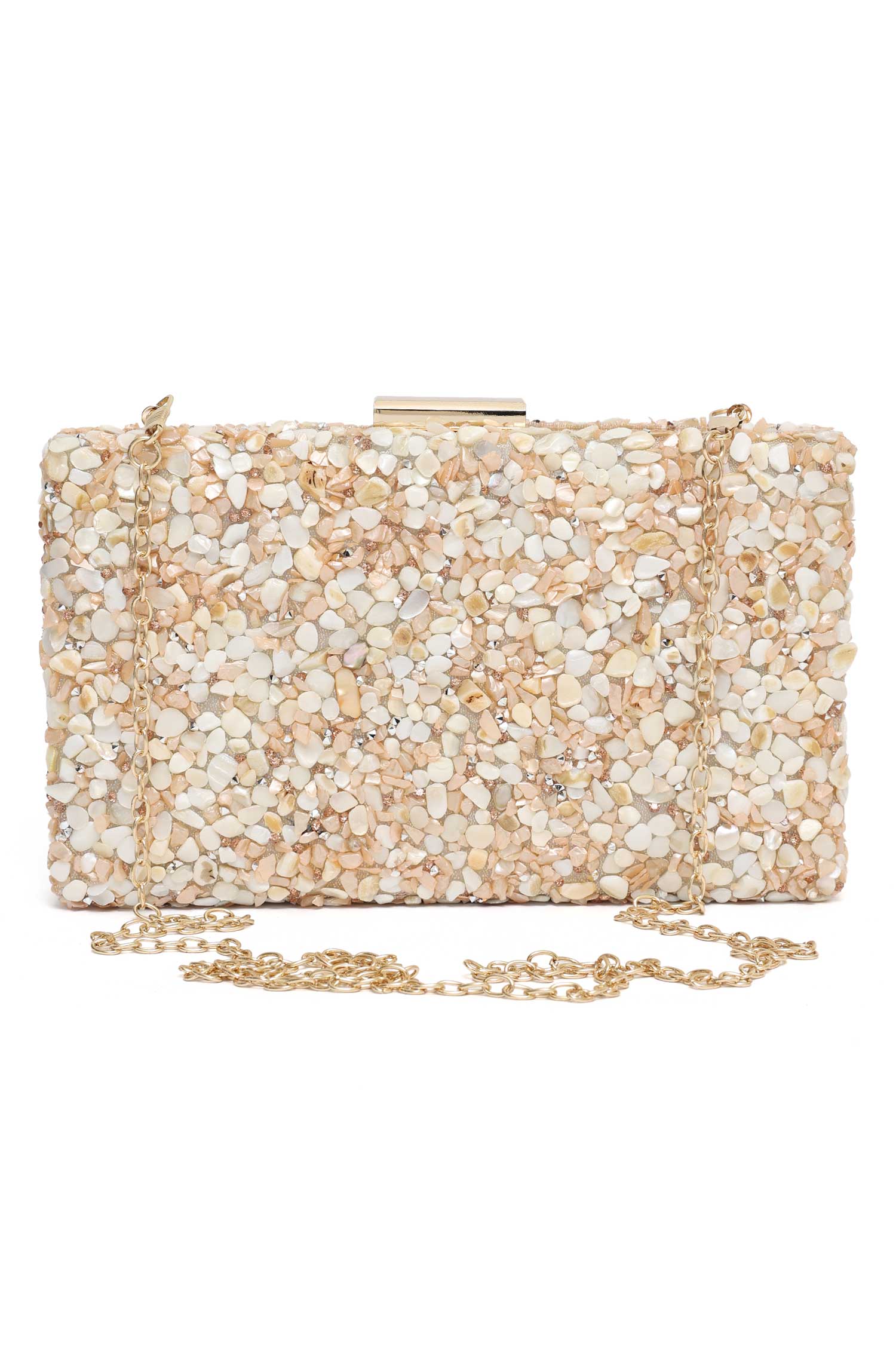 PEBBELED GLAM BOX CLUTCH-PEACH