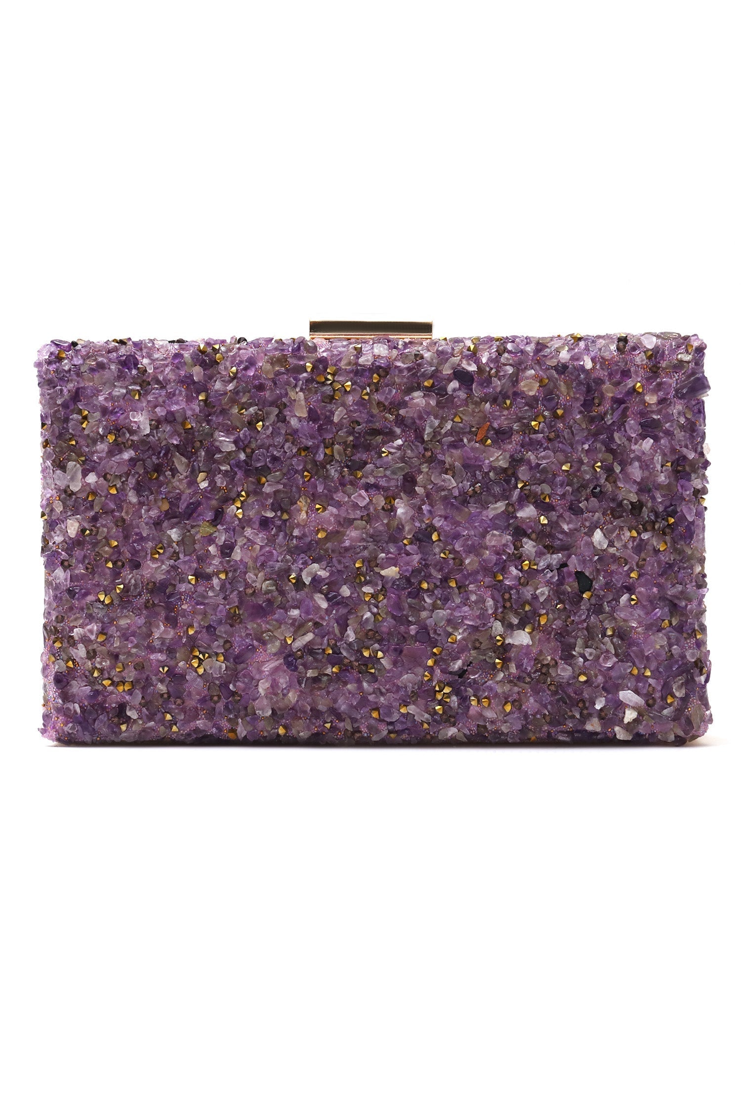 This chic box clutch features an eye-catching pebbled texture, accented with a sleek metallic frame. The structured design includes a top clasp closure and a detachable chain strap for versatile styling. Compact yet spacious enough for essentials, it's a perfect accessory to add a touch of modern elegance to your evening attire.