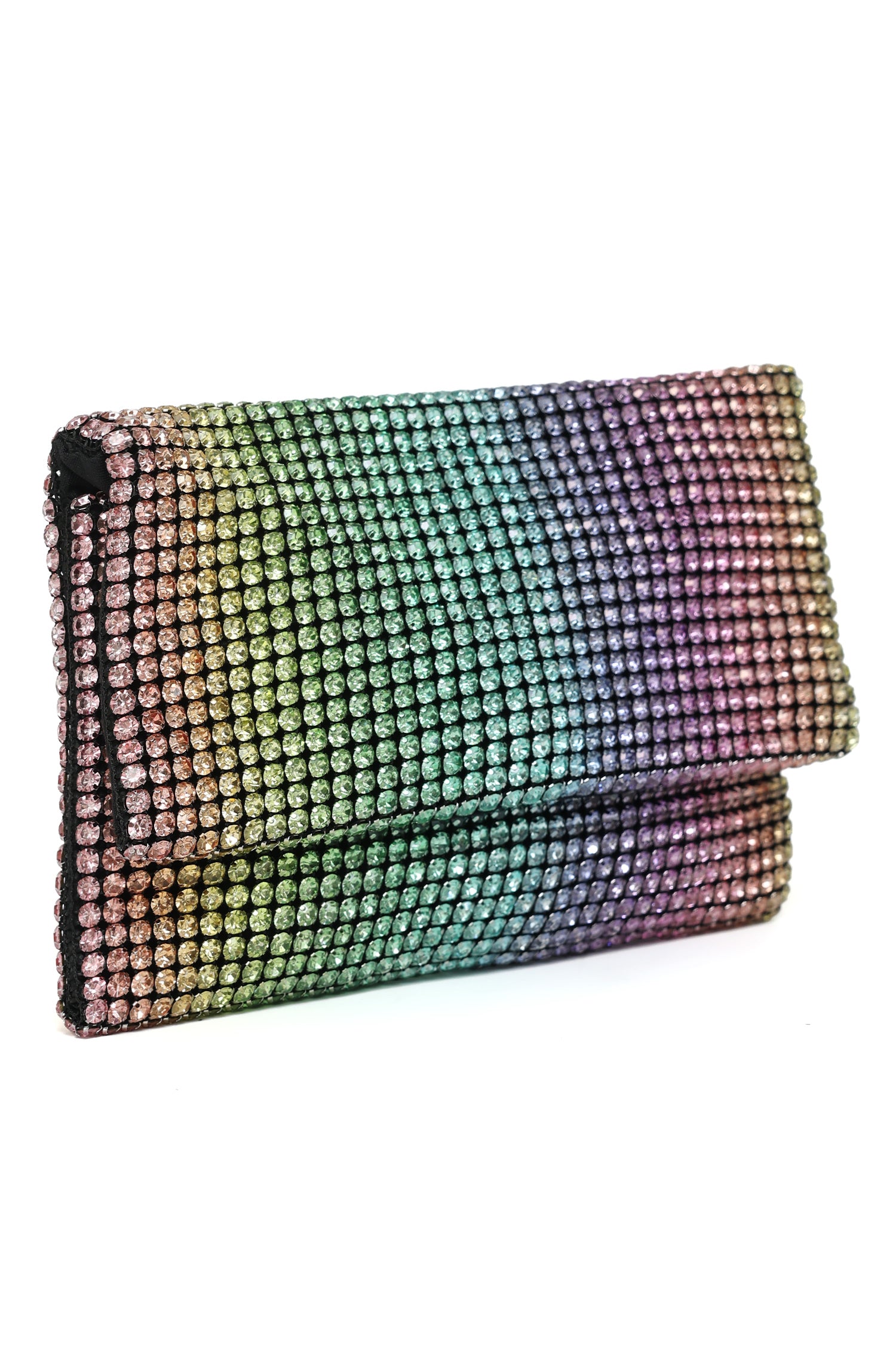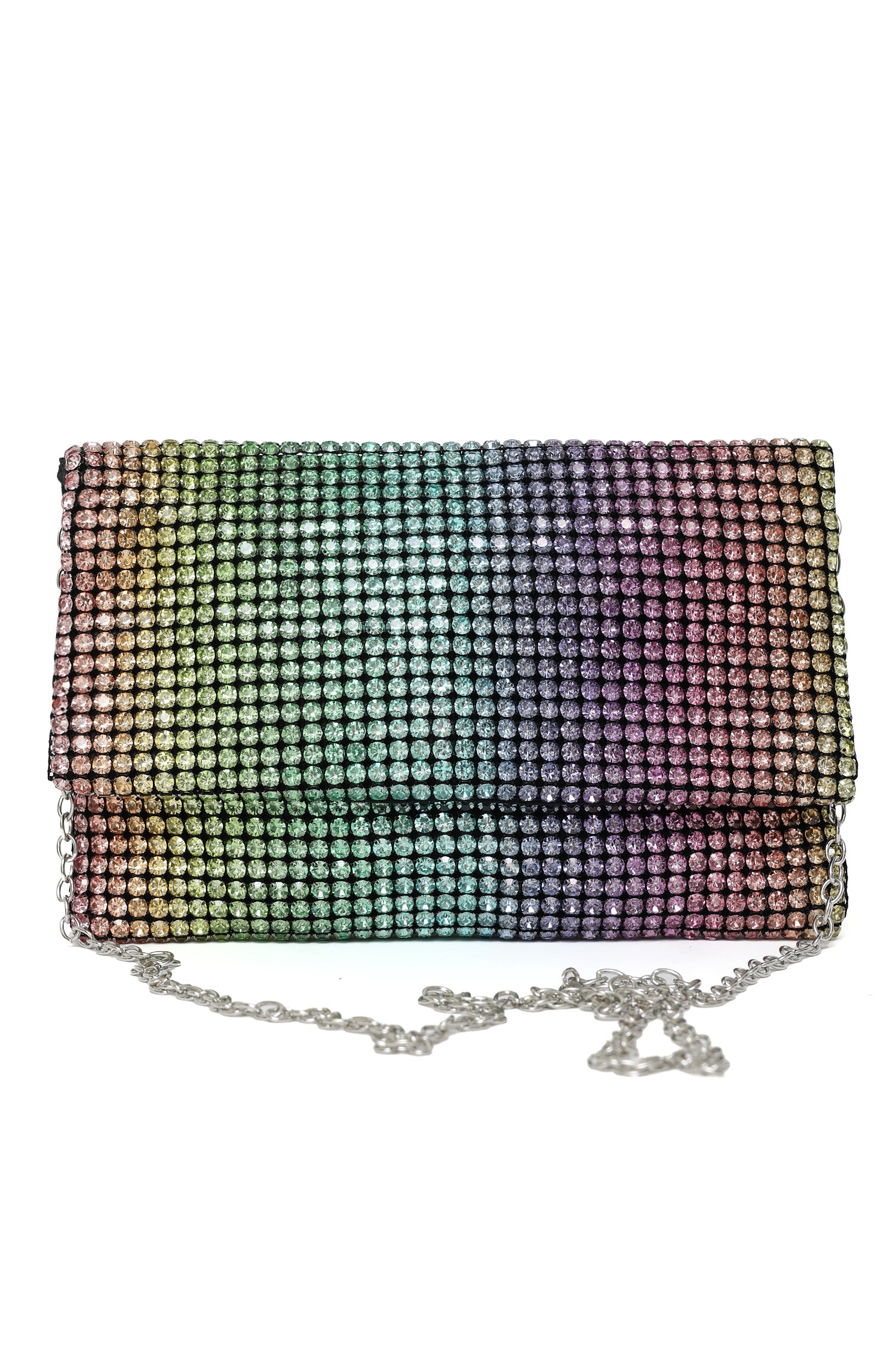 Make a dazzling statement with the Glam Crystal Evening Clutch. Adorned with shimmering crystals and a sleek chain strap, this clutch adds a touch of sparkle to any outfit. Perfect for special occasions or nights out, it offers enough space for your essentials while elevating your style with its eye-catching design.