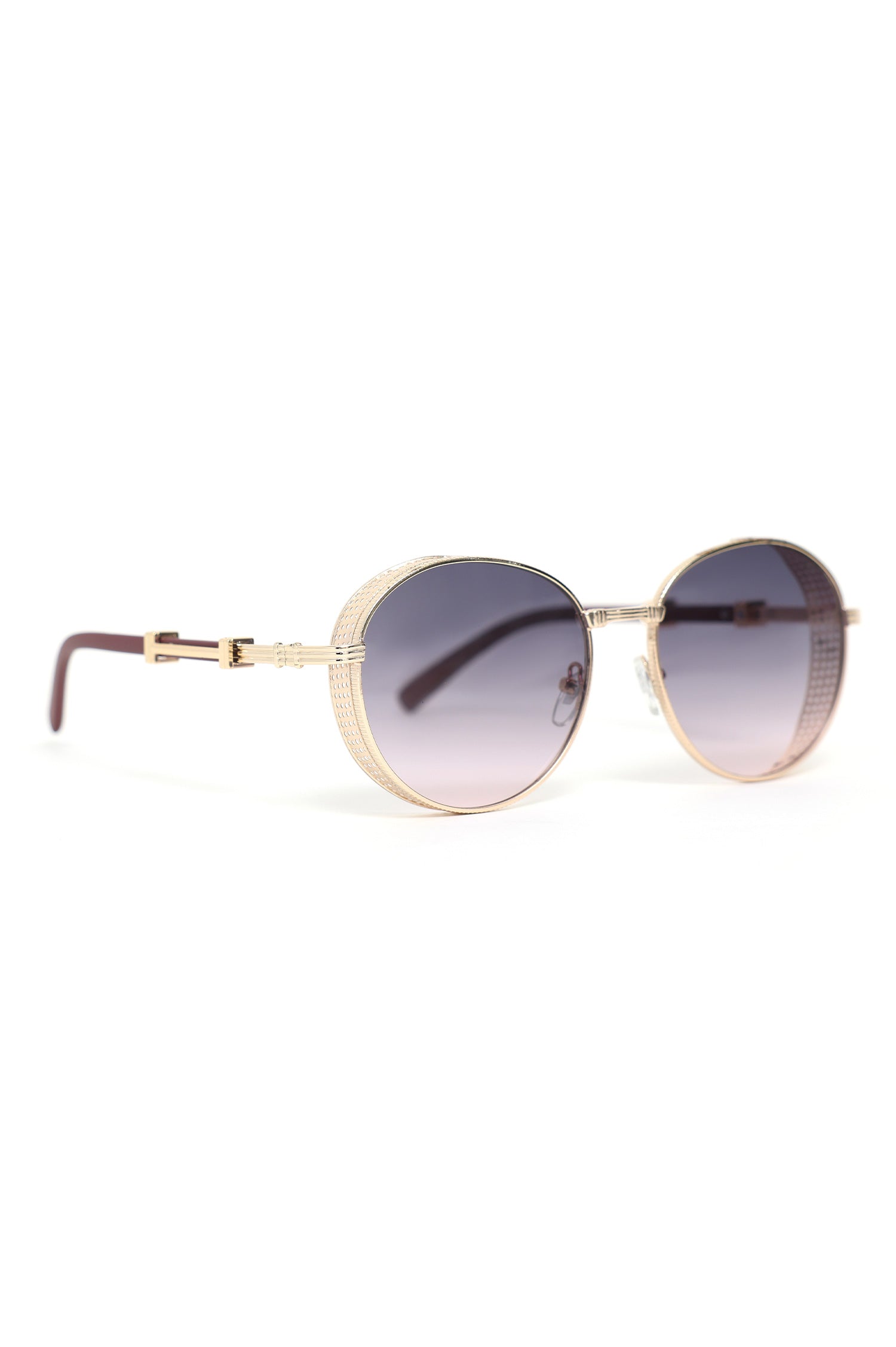 Introducing our stylish sunglasses, crafted with a touch of elegance and designed to make heads turn. These sunglasses are meticulously made from high-quality metal, ensuring durability and a sleek look that lasts. With a captivating gold frame.
