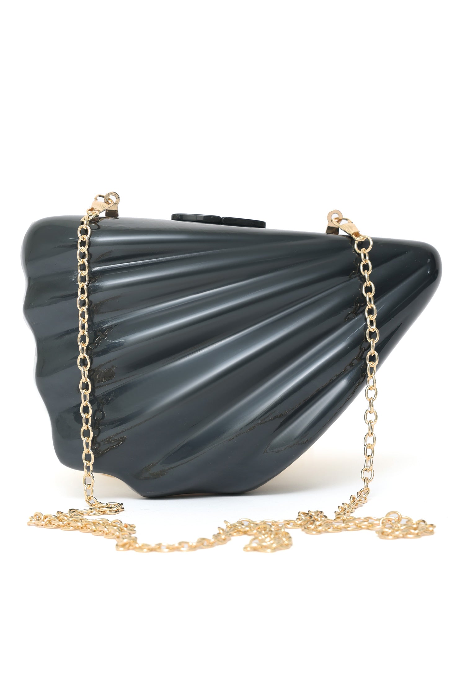 Channel elegance with the Shell Chic Clutch Bag, featuring a unique shell-inspired design and a sleek finish. This standout accessory includes a detachable chain strap, making it versatile for both handheld and crossbody styling. Perfect for evening events or special occasions, this clutch bag effortlessly elevates your look with its modern and sophisticated vibe.