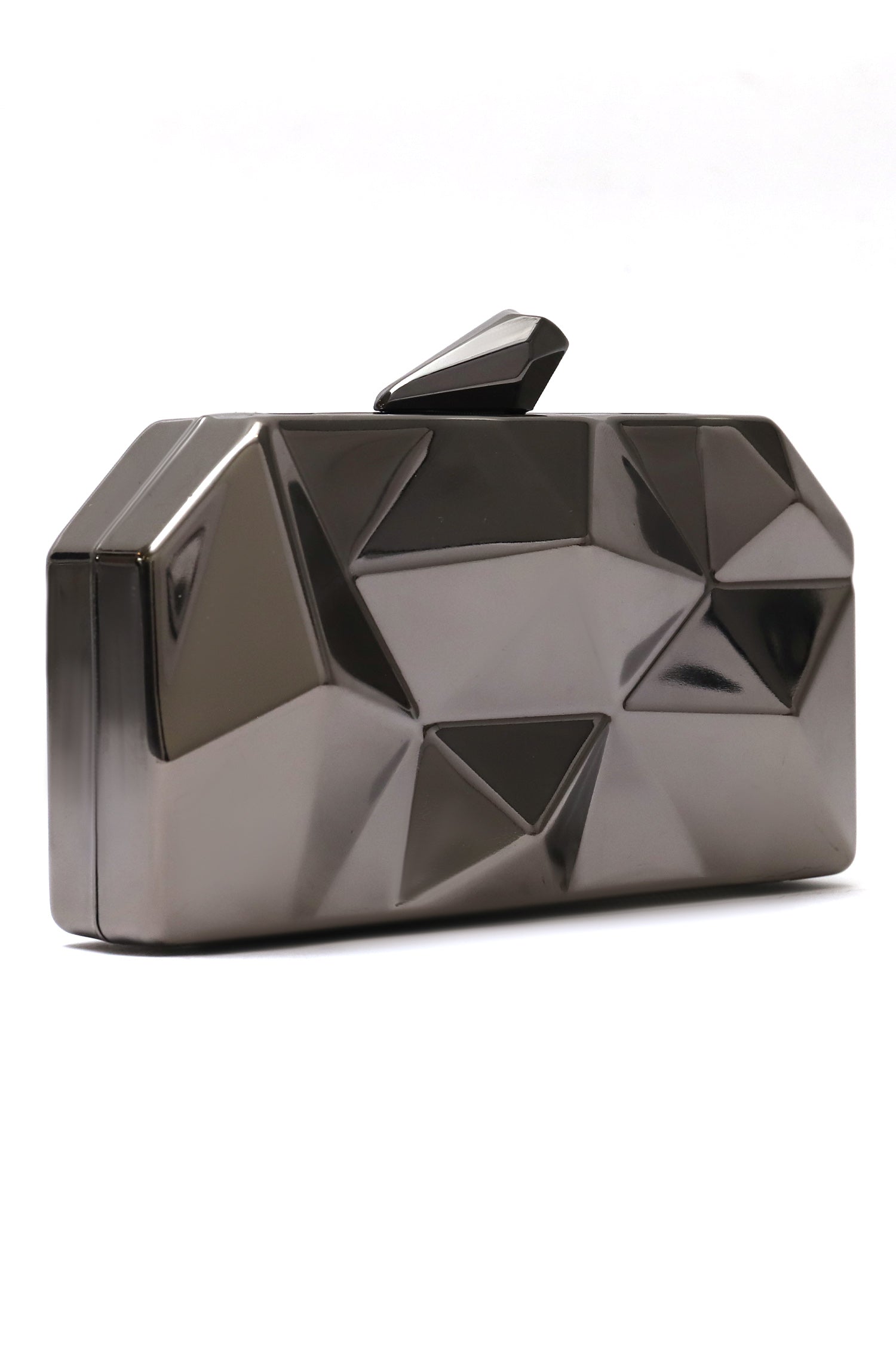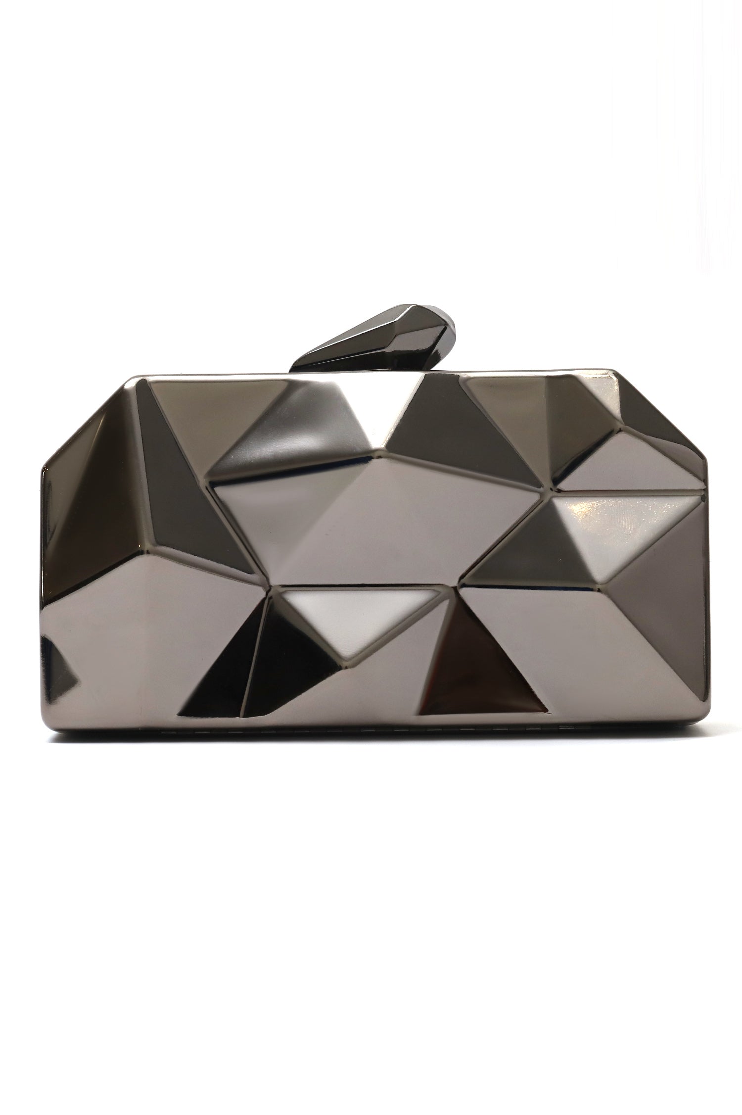 Flaunt your sophisticated style with this intricately crafted metallic clutch. Its gleaming exterior is enhanced by a sturdy metallic closure and a sleek chain, offering a high-end, polished look perfect for special occasions. Ideal for those who love to make a statement with refined elegance.