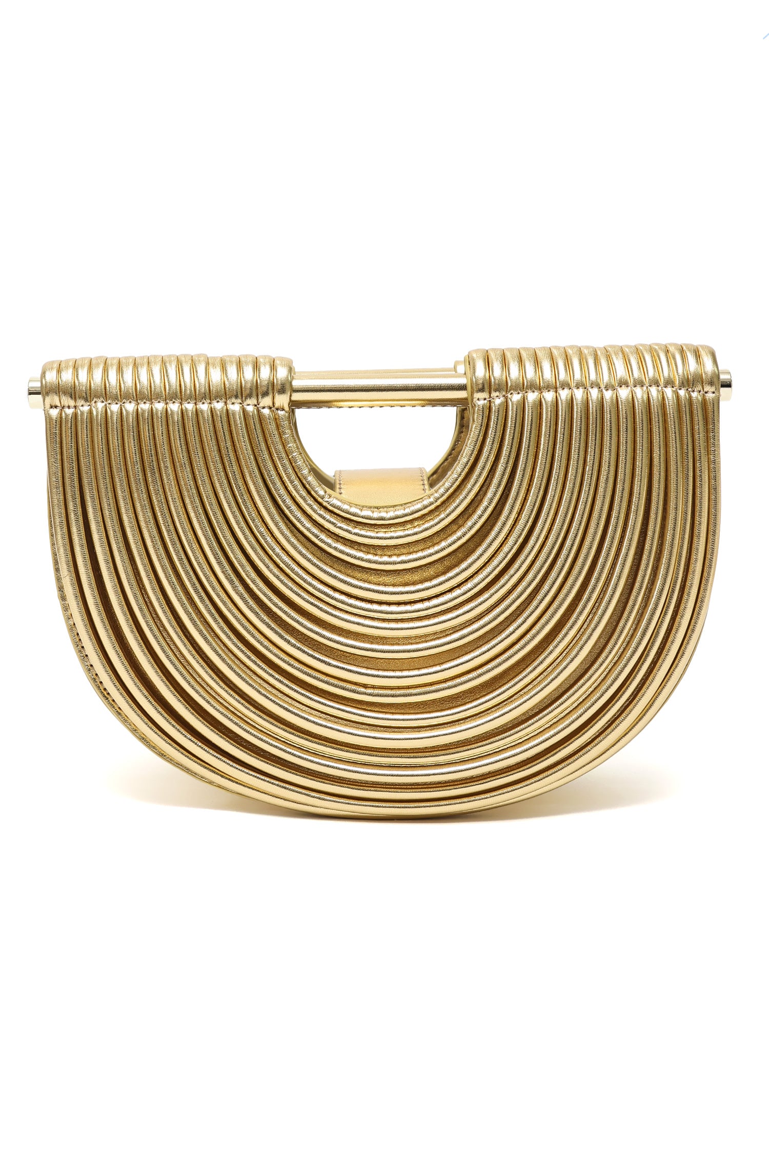 A distinctive design built around symmetrical arc layering. The strong top bar handle introduces a contemporary architectural finish. Structured shaping ensures a polished and refined profile. Ideal for sophisticated occasion styling.