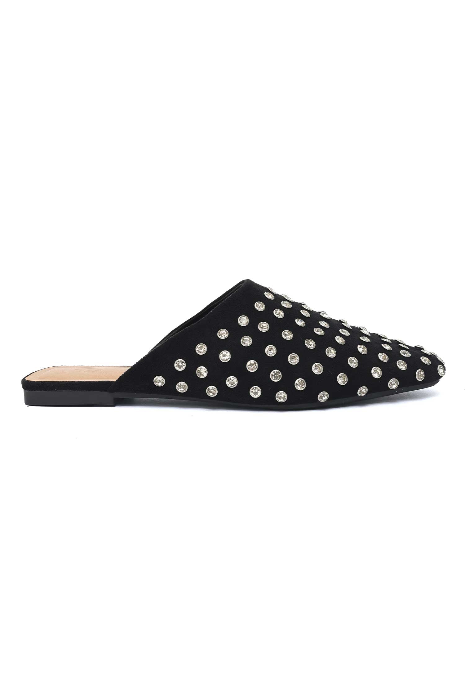 A plush velvet base sprinkled with high-shine crystal studs. This backless design blends glamour with ease. Striking enough for parties, comfy for everyday.