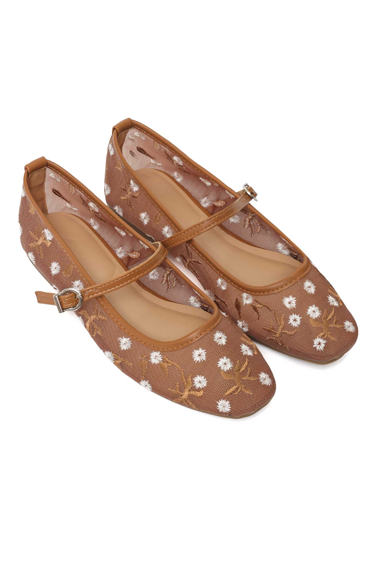 Whimsical floral stitches bloom across breathable sheer panels.