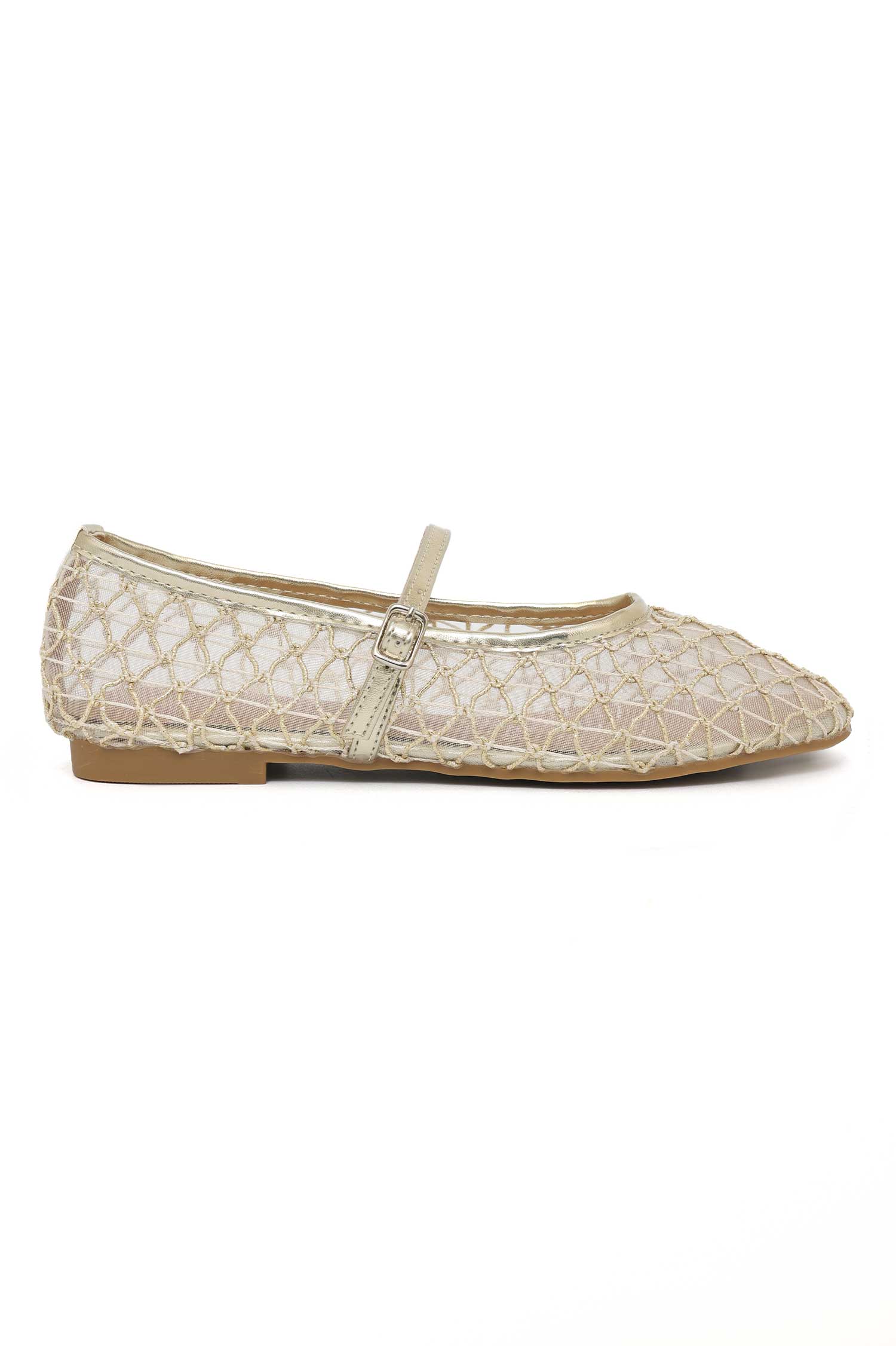 Elegant embroidery laid over sheer mesh in a glimmering lattice.