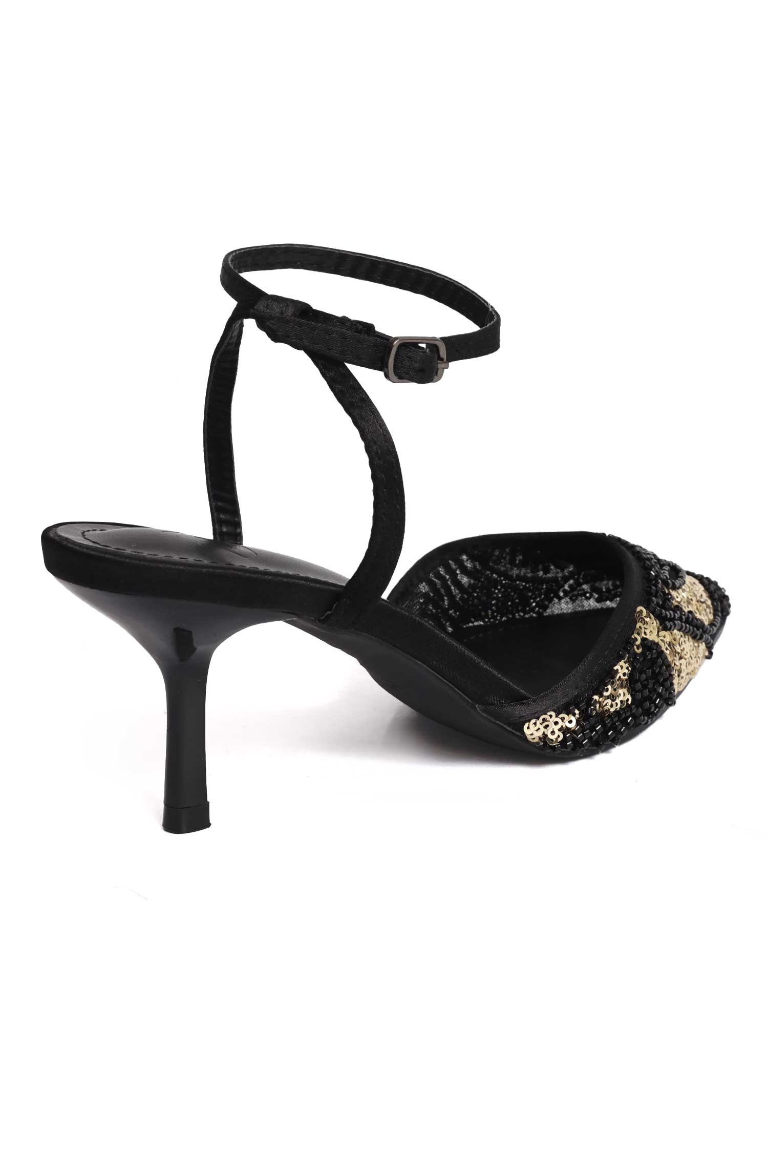 The shape features a crisp, elongated toe and a delicate sling strap. The bead cluster across the vamp yields a rich, tactile surface. The buckle adds a touch of metallic polish without bulk. The interior padding ensures comfortable progression from morning to night.