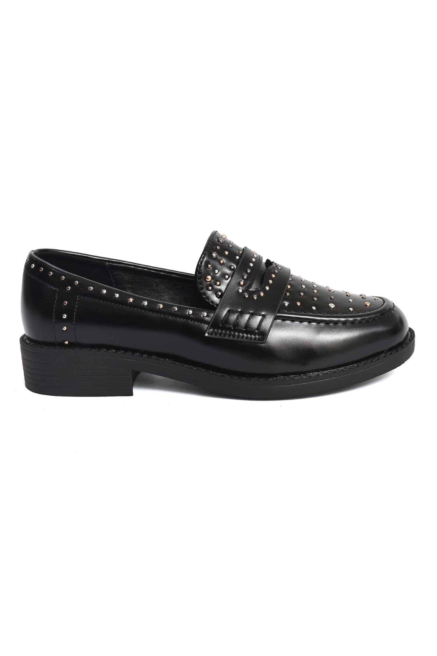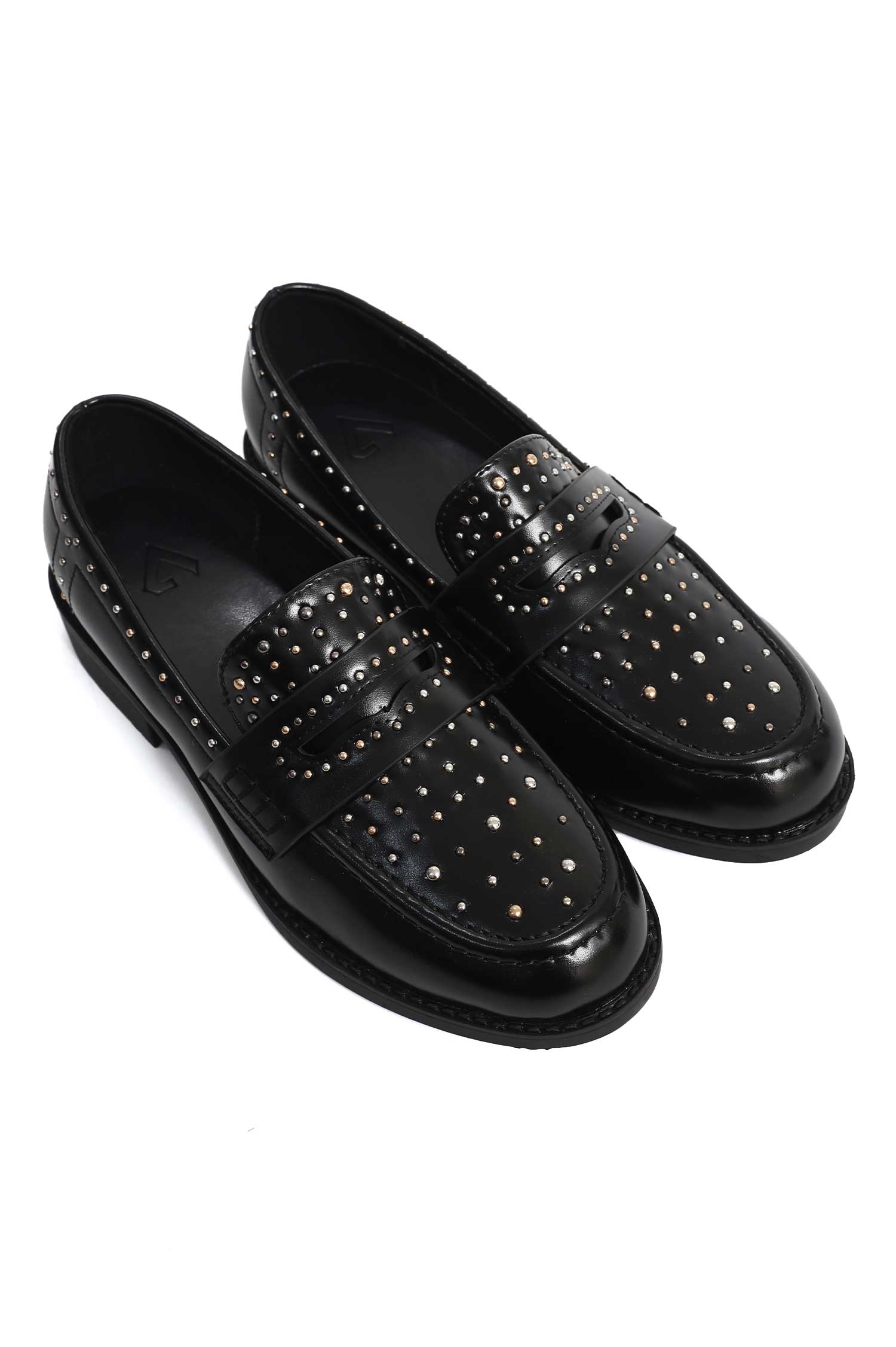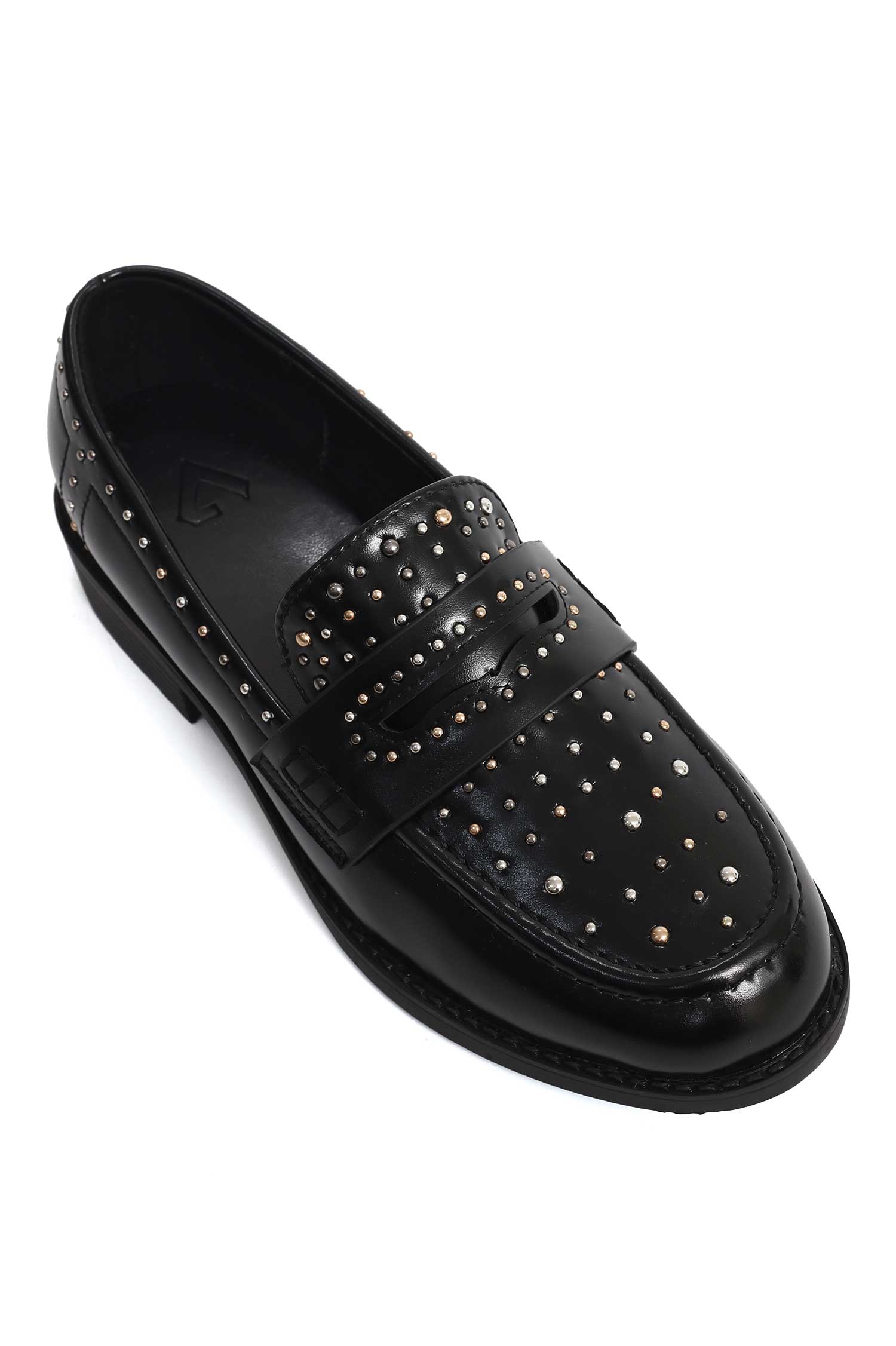 The studded upper offers a tactile mosaic that feels premium to the touch. The penny strap introduces a formal, elegant line. The welt and footbed are engineered for all-day comfort and durability.