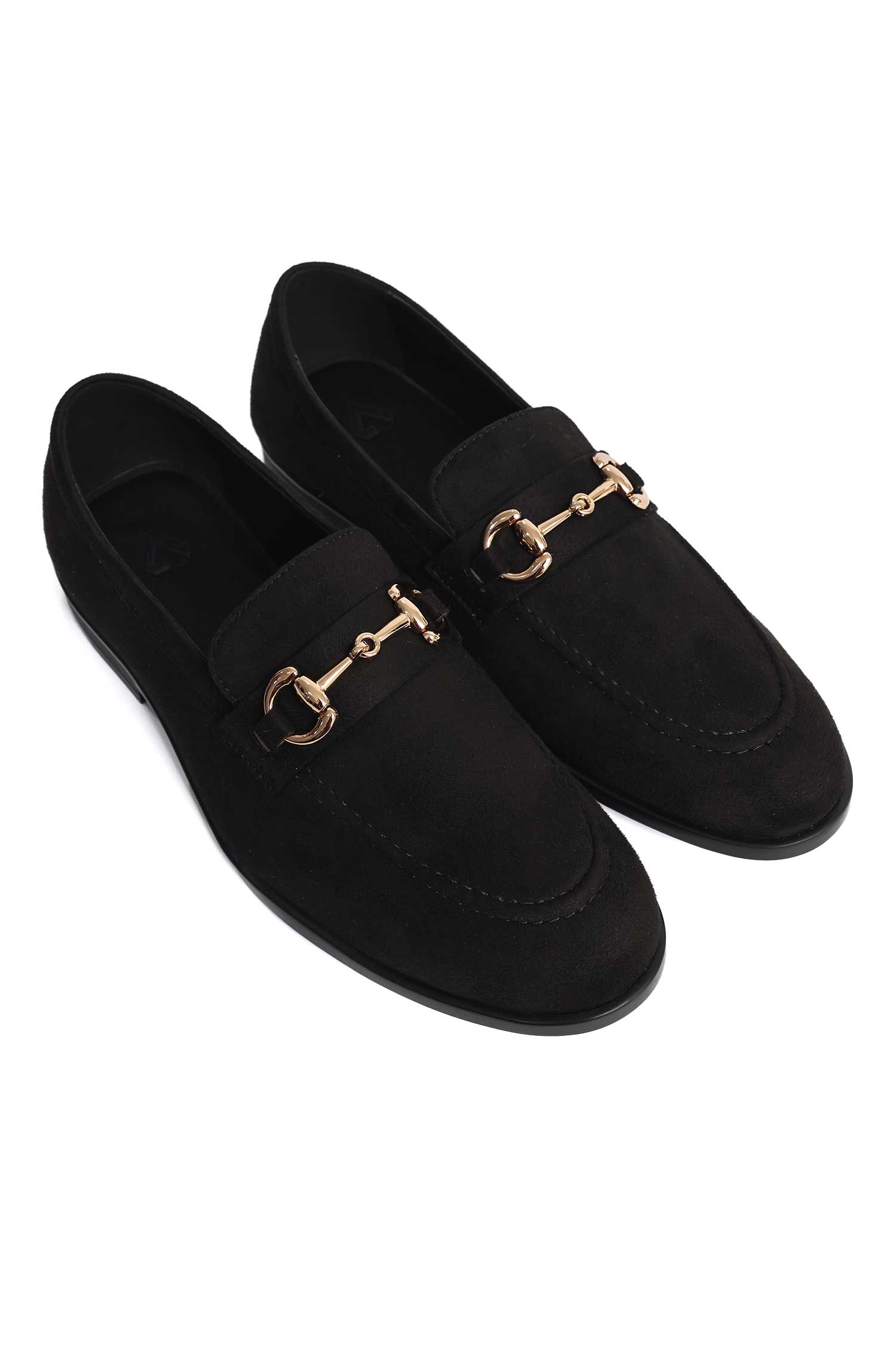 The texture differences from the suede create a tactile, consistent surface. The hardware across the vamp adds a bold yet refined touch. The interior padding supports comfortable steps.