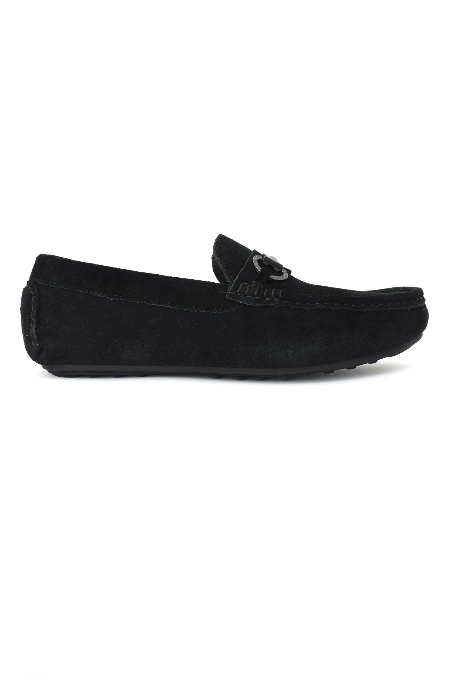 A sophisticated moccasin-style loafer with tonal stitching and a bold metal bit. The soft suede finish enhances its tailored silhouette. Built for classic wardrobes with contemporary edge.