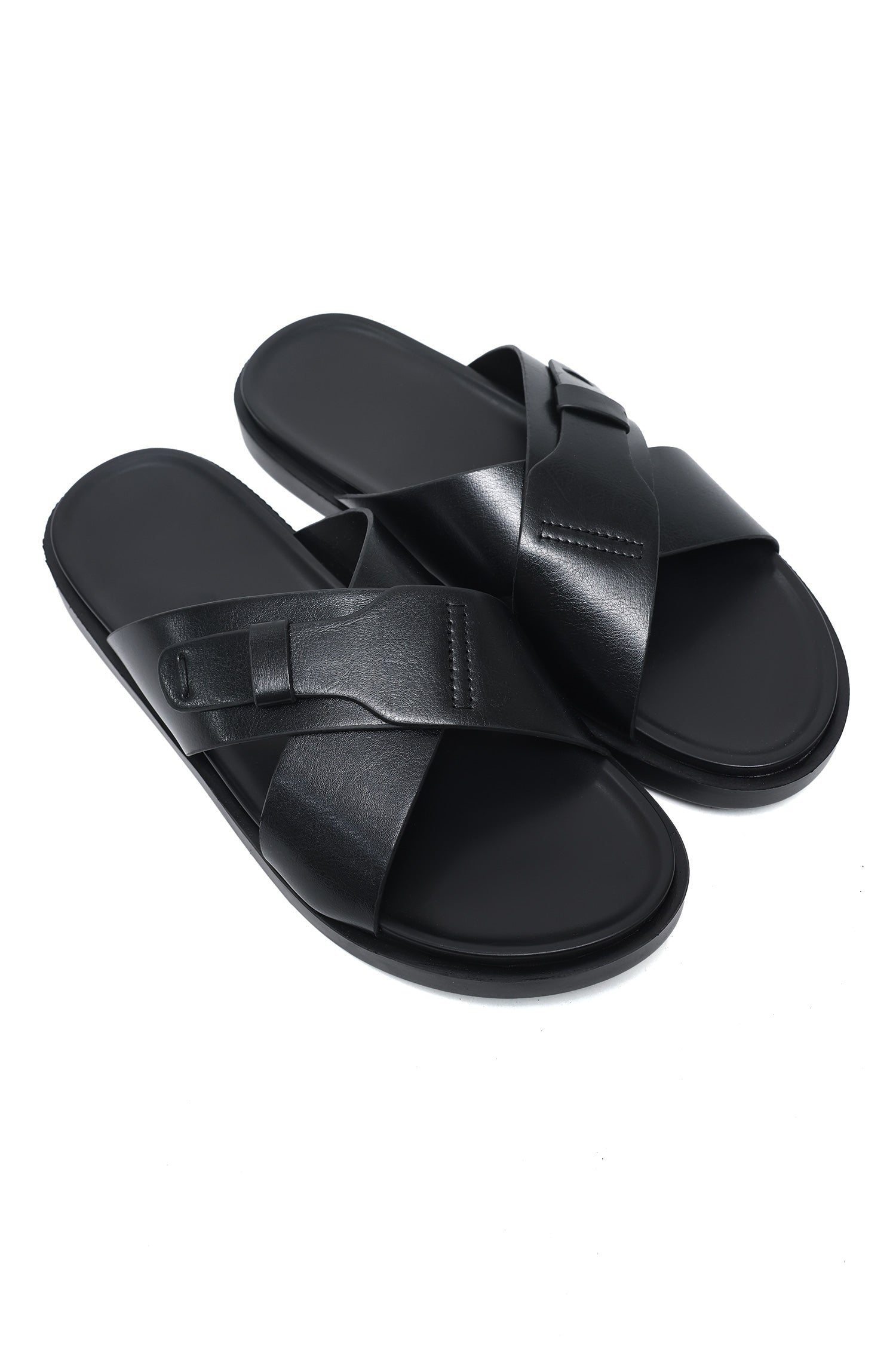 Refined open silhouette designed with overlapping bands that create a structured yet relaxed fit. The smooth leather texture highlights natural grain detailing for a premium appearance. Clean stitching accents enhance craftsmanship and durability.