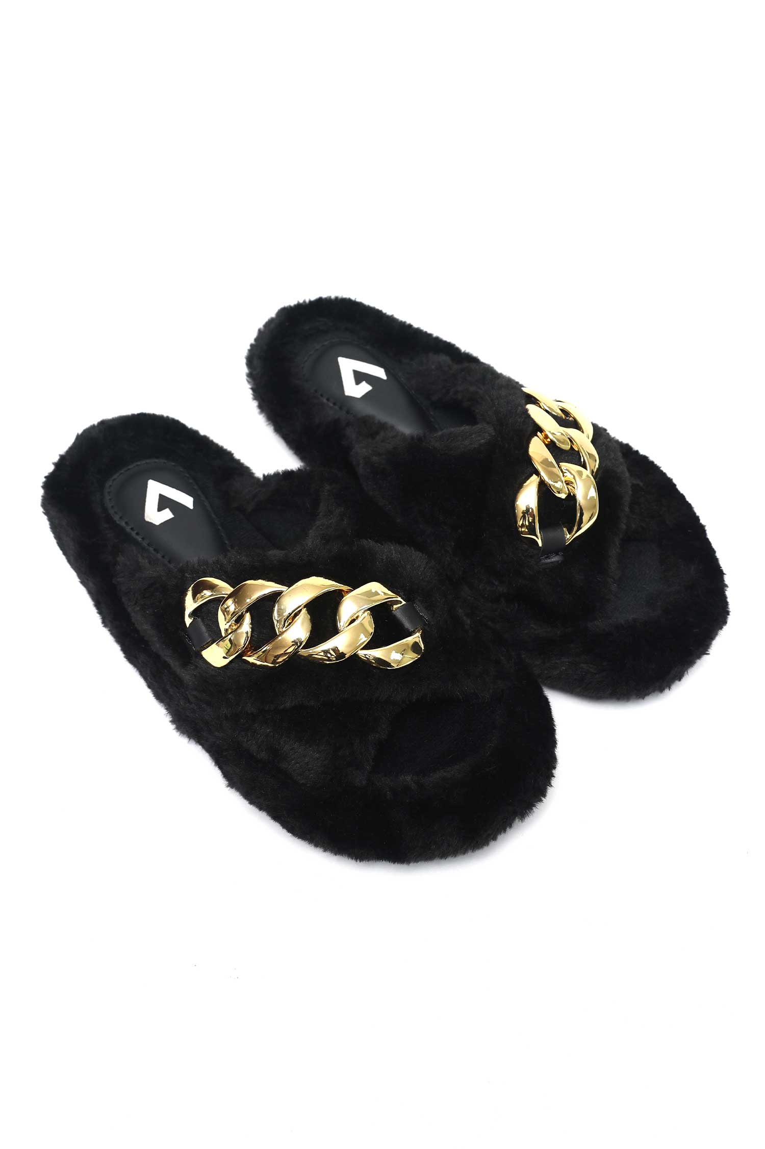 COZY CHAIN FUR SLIDE-BLACK