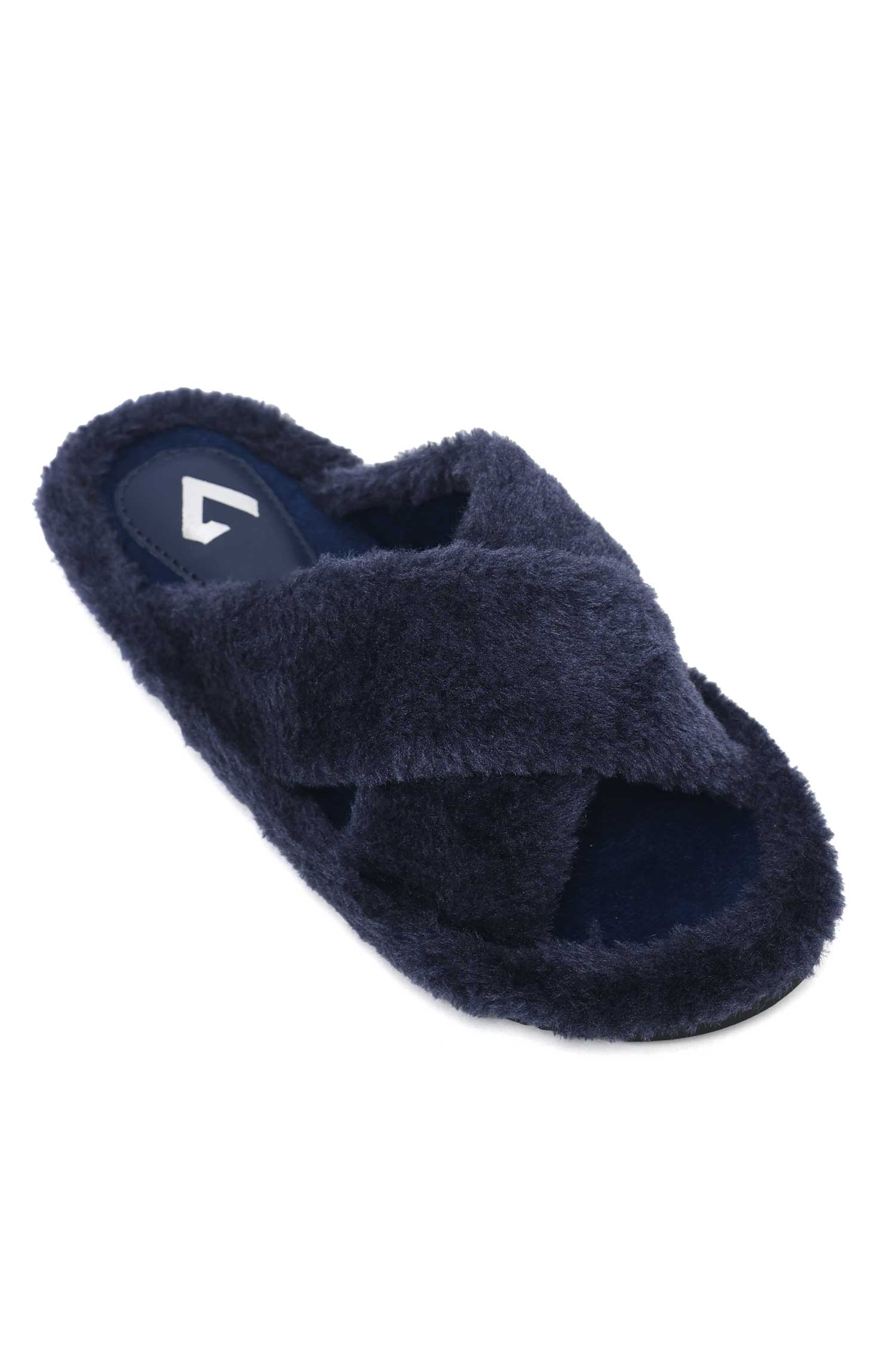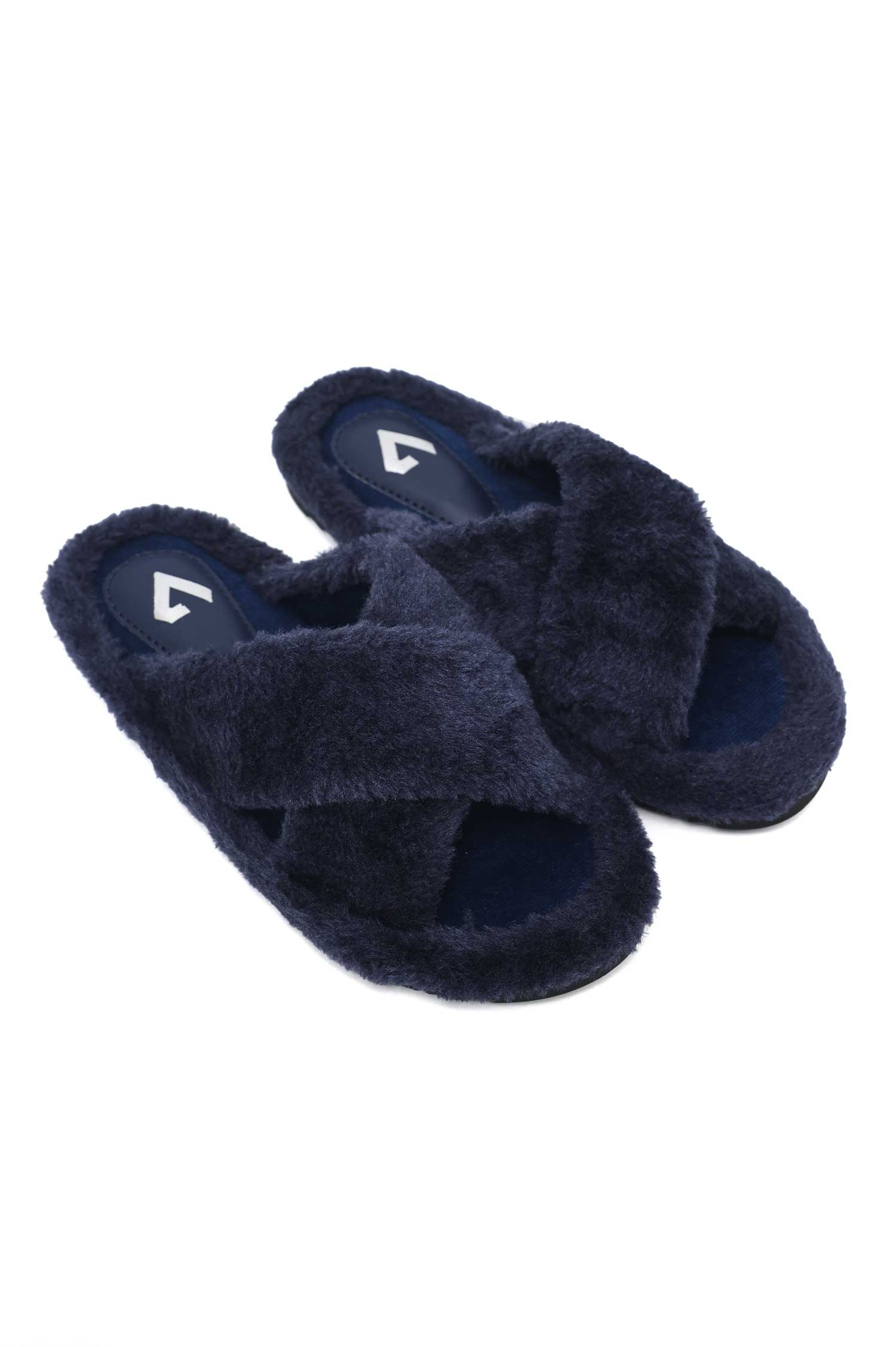 Stylish cross-strap slides with soft furry texture. A lightweight build makes them easy to wear. A blend of comfort and casual home fashion.
