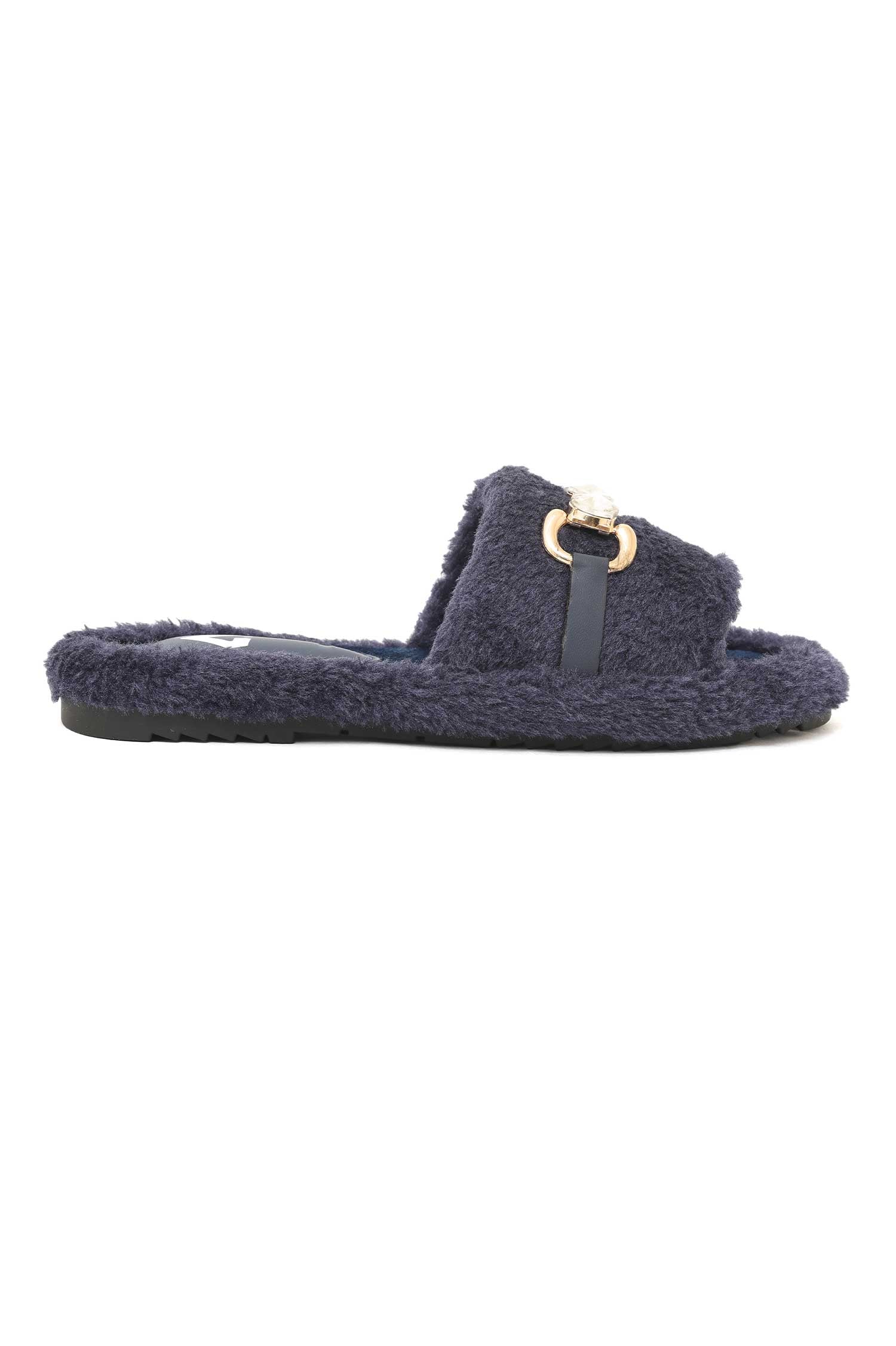 Soft faux fur crafted with sparkling studs for a chic statement. Designed with cushioned comfort and a cozy slip-on fit. Perfect for elevating casual loungewear or a relaxed day out.