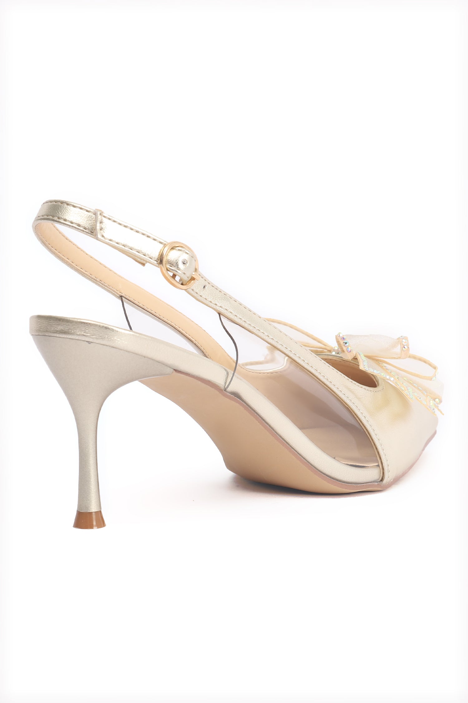 STYLISH HEELS WITH EMBELLISHED BOW-GOLD