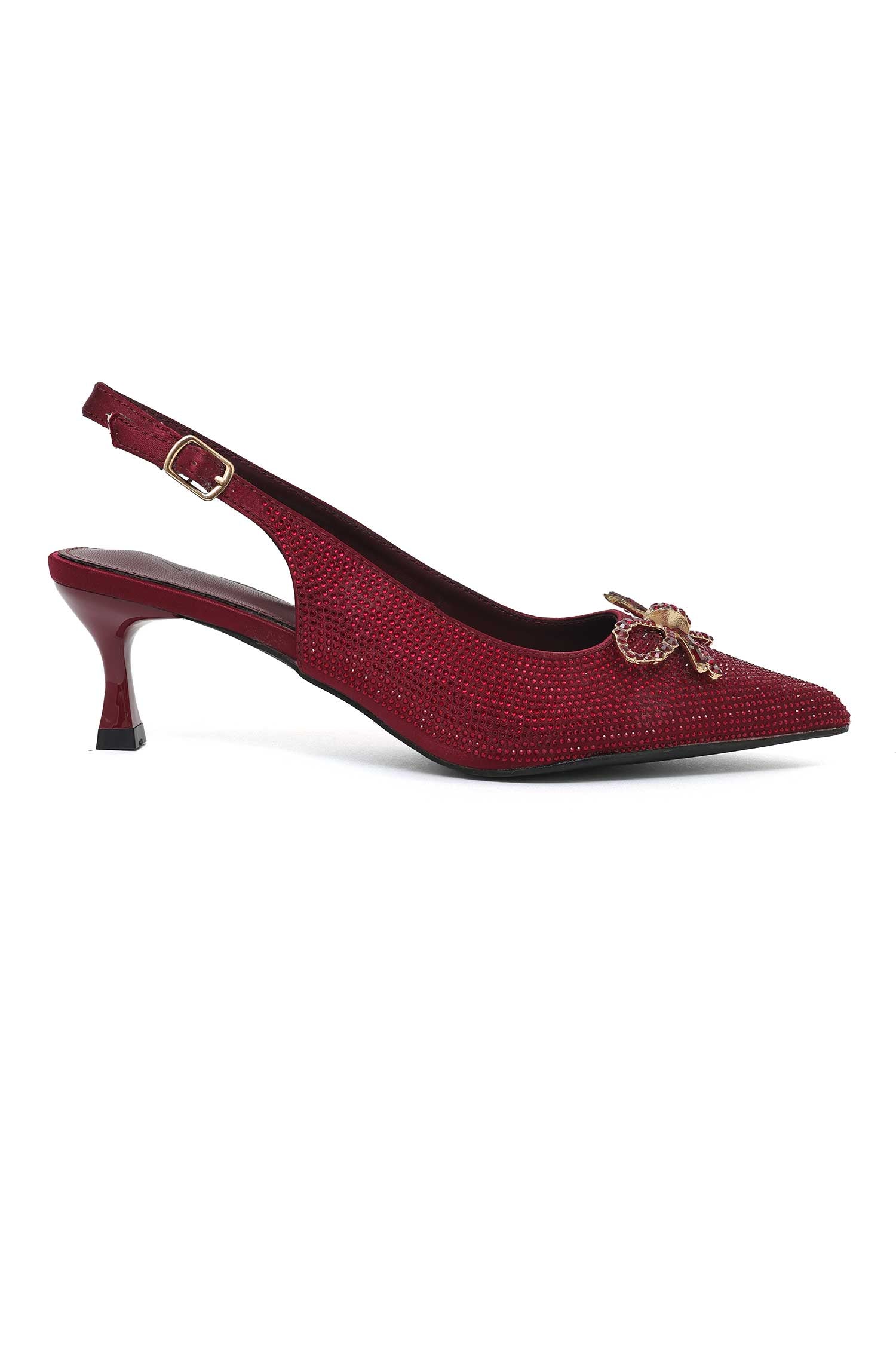 Dressed in sparkling rhinestones, this pointed slingback features a dainty embellished bow at the vamp. The kitten heel and sleek silhouette add a touch of elegance. A show-stealing choice for evening looks.