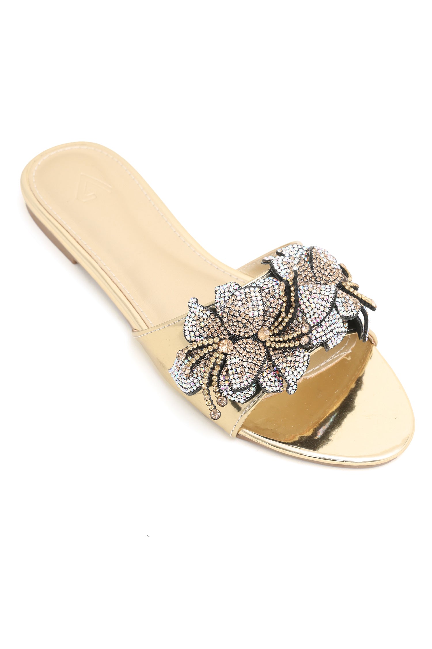 Elevate your summer style with these stunning women's slides featuring a beautiful embellished flower design on the toe. Crafted in luxurious patent material, these sandals are perfect for adding a touch of elegance to any outfit. Whether you're heading to the beach or a party, these sandals will be your go-to accessory for the season. Step out in style with these chic and comfortable slides.