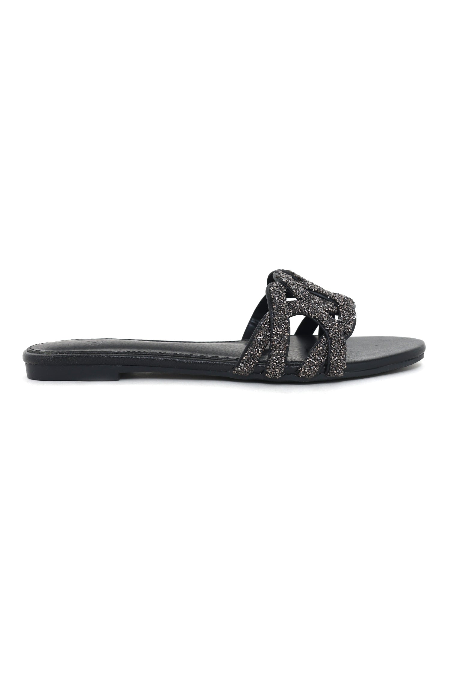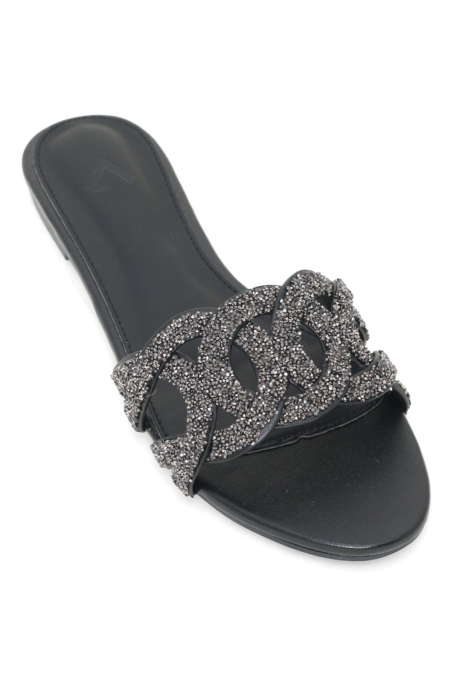 CRYSTAL GLAMOUR SLIDES-BLACK