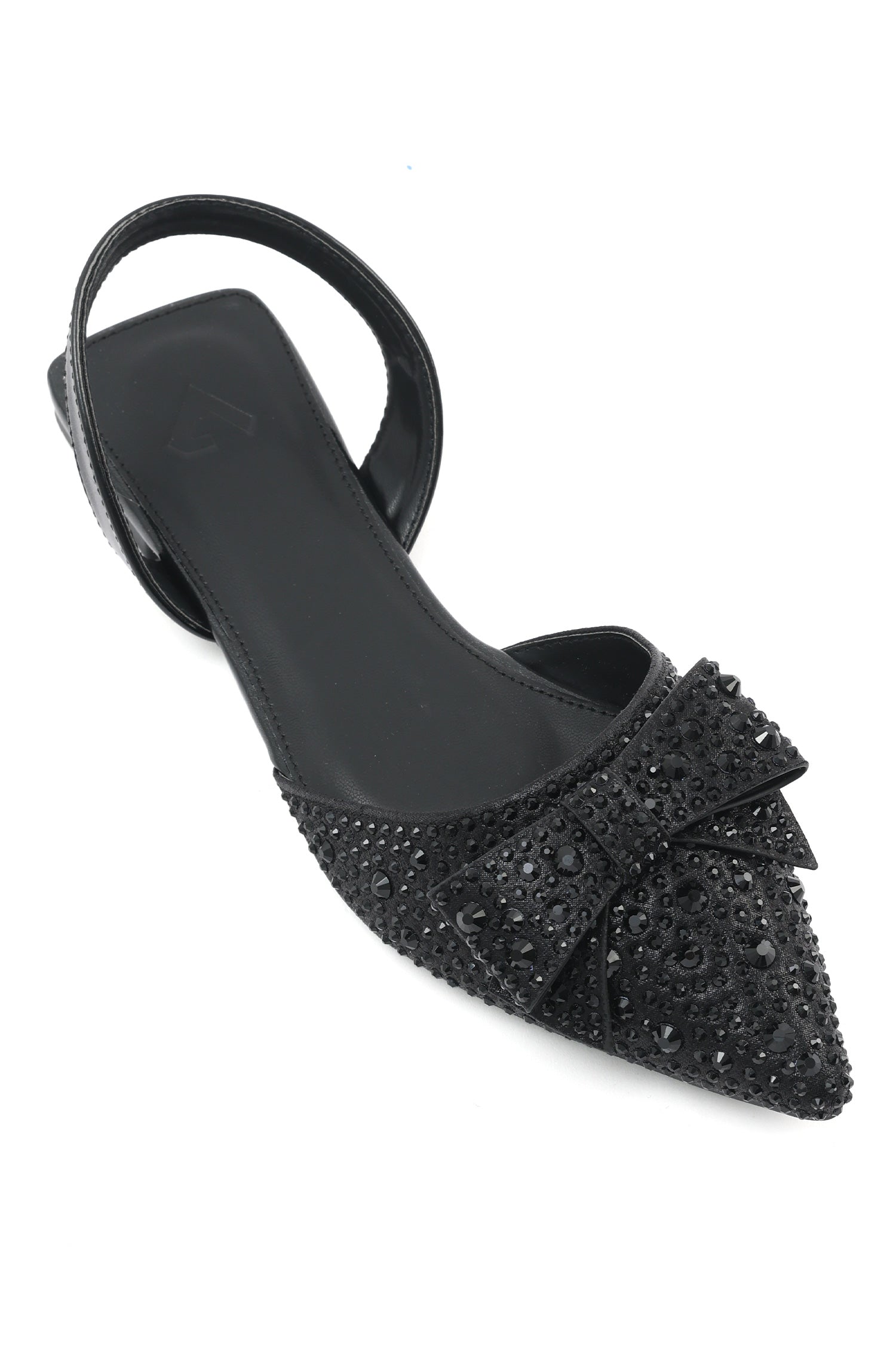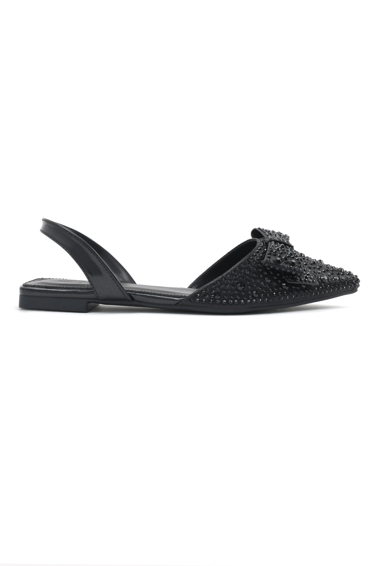 Add a touch of sparkle with these elegant flats, featuring a crystal-studded bow design. Perfect for elevating both casual and formal ensembles with a hint of glamour.