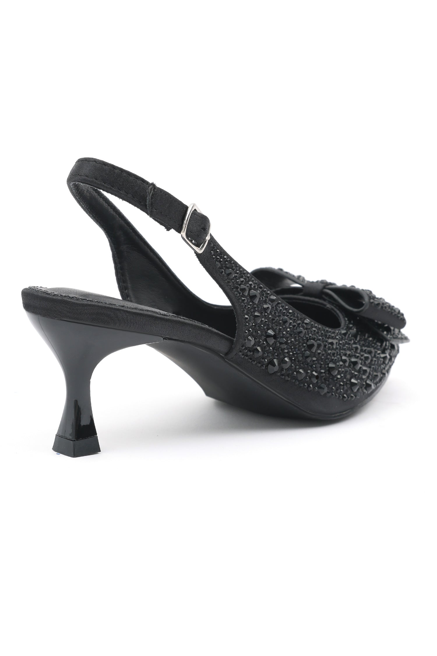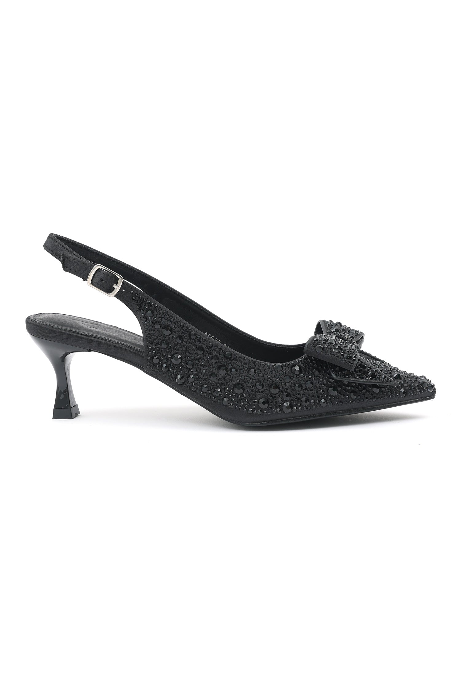 Step into elegance with these embellished slingback heels, designed for a touch of glamour. Featuring a secure adjustable strap and a pointed toe adorned with sparkling crystals, these heels offer a chic and comfortable fit. The mid-height heel provides the perfect lift, while the cushioned insole ensures lasting comfort. Perfect for evening events or special occasions, these heels bring sophistication and style to any outfit.