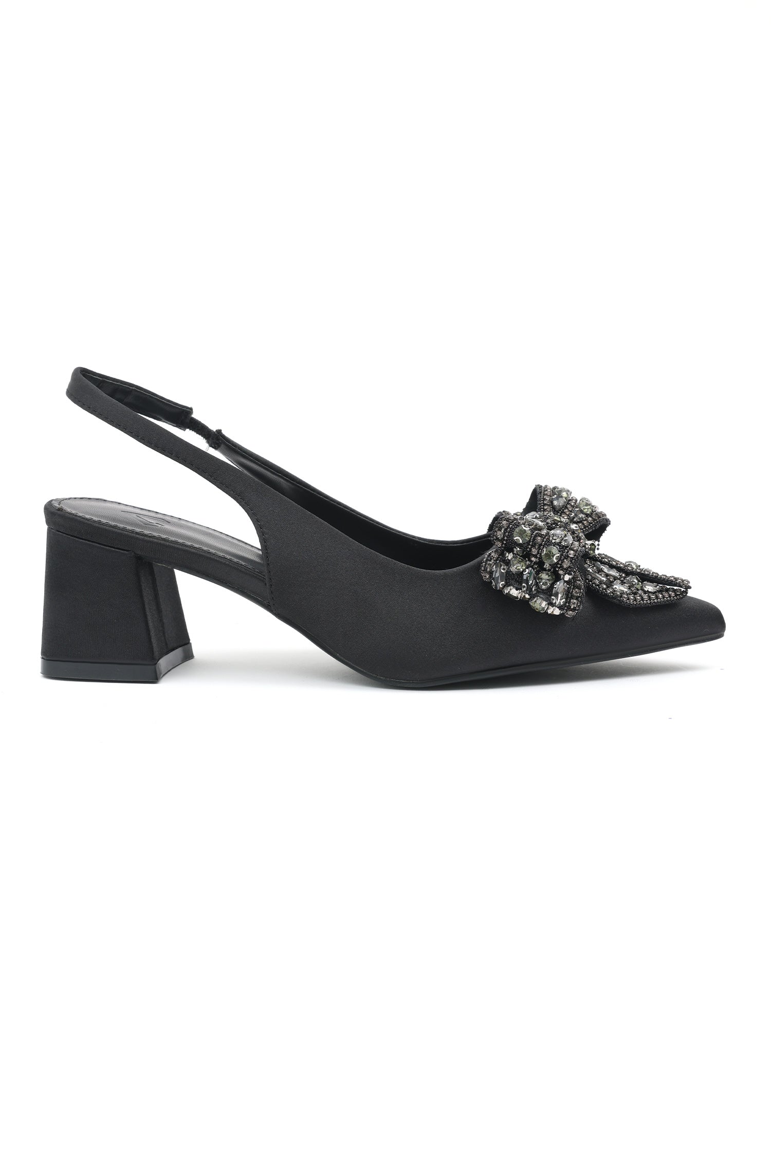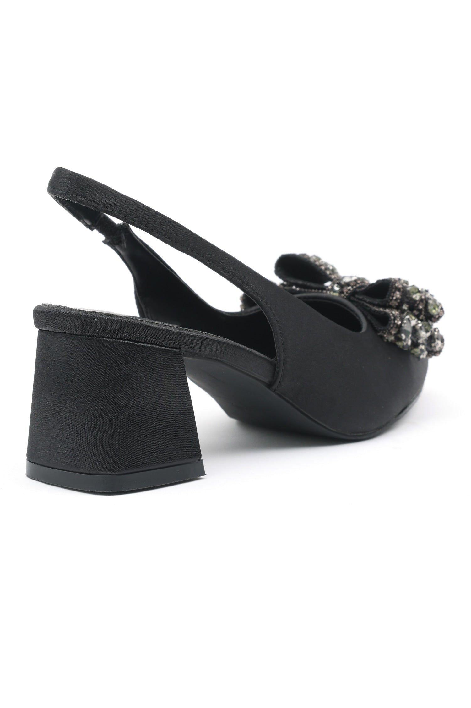 Step into elegance with these slingback block heels, crafted for a blend of style and comfort. Featuring a chic satin finish and a dazzling embellished bow detail, these heels offer a sophisticated look perfect for formal occasions. The adjustable slingback strap ensures a secure fit, while the sturdy block heel provides all-day stability. A cushioned insole enhances comfort, making these heels your go-to for both style and ease.