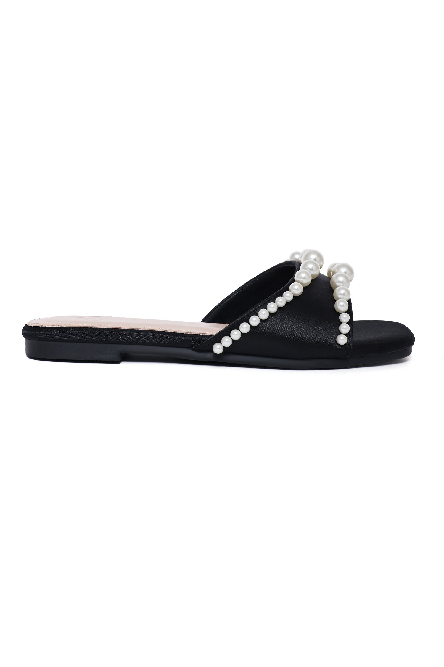 Luxurious pearl-embellished slide. Delicate pearl accents. The cushioned insole ensures all-day comfort, making them perfect for both special occasions and everyday glamour.