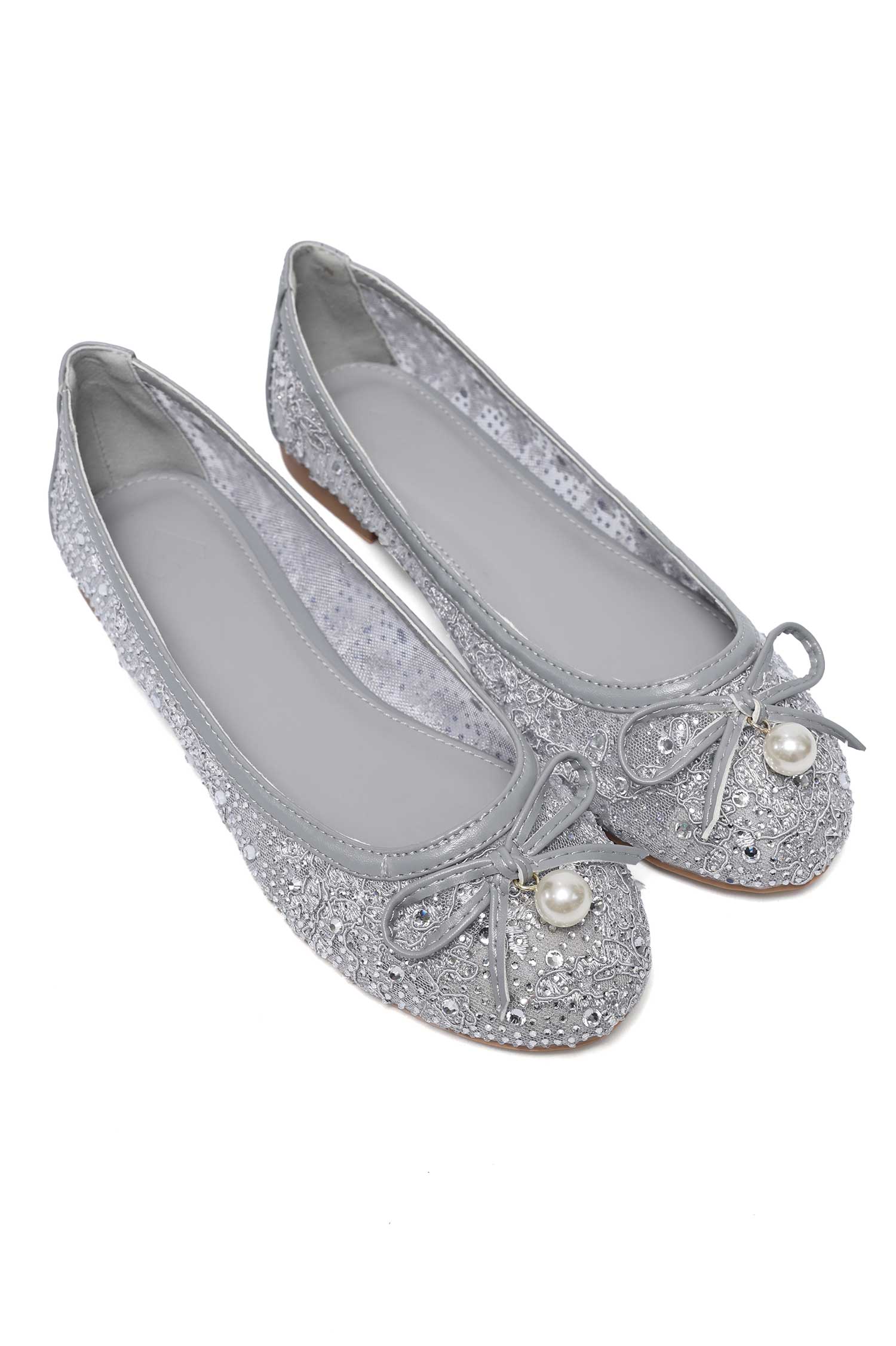 ORNATE BOW BALLET SHOE-GREY