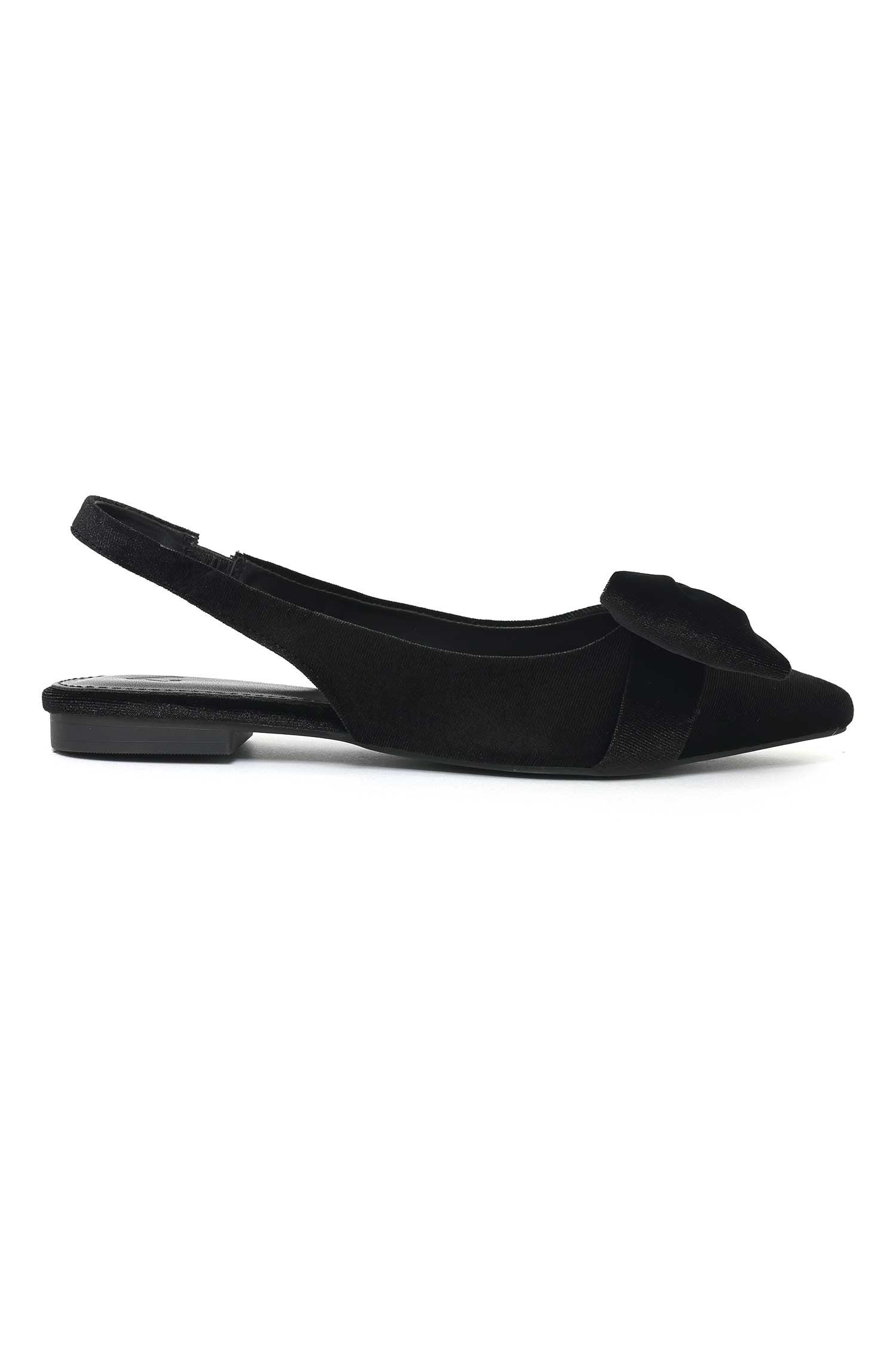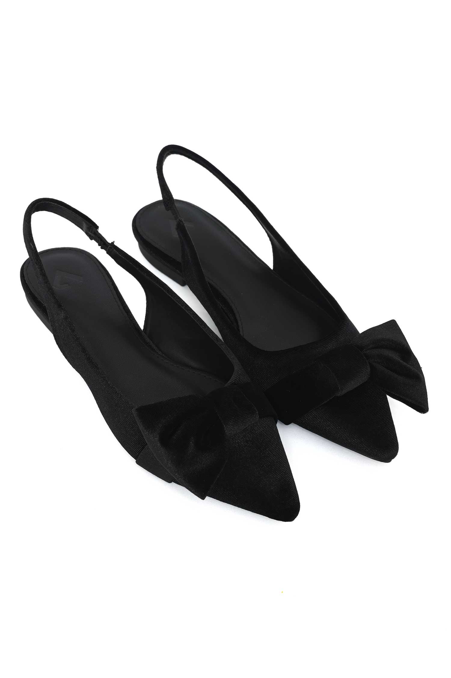 Luxurious velvet slingback flats with structured bow in tonal fabric.