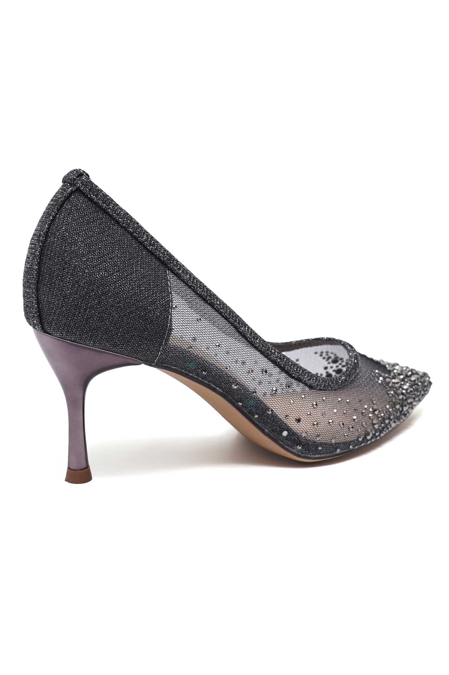 OPALINE EMBELLISHED POINT TOE HEEL-PEWTER