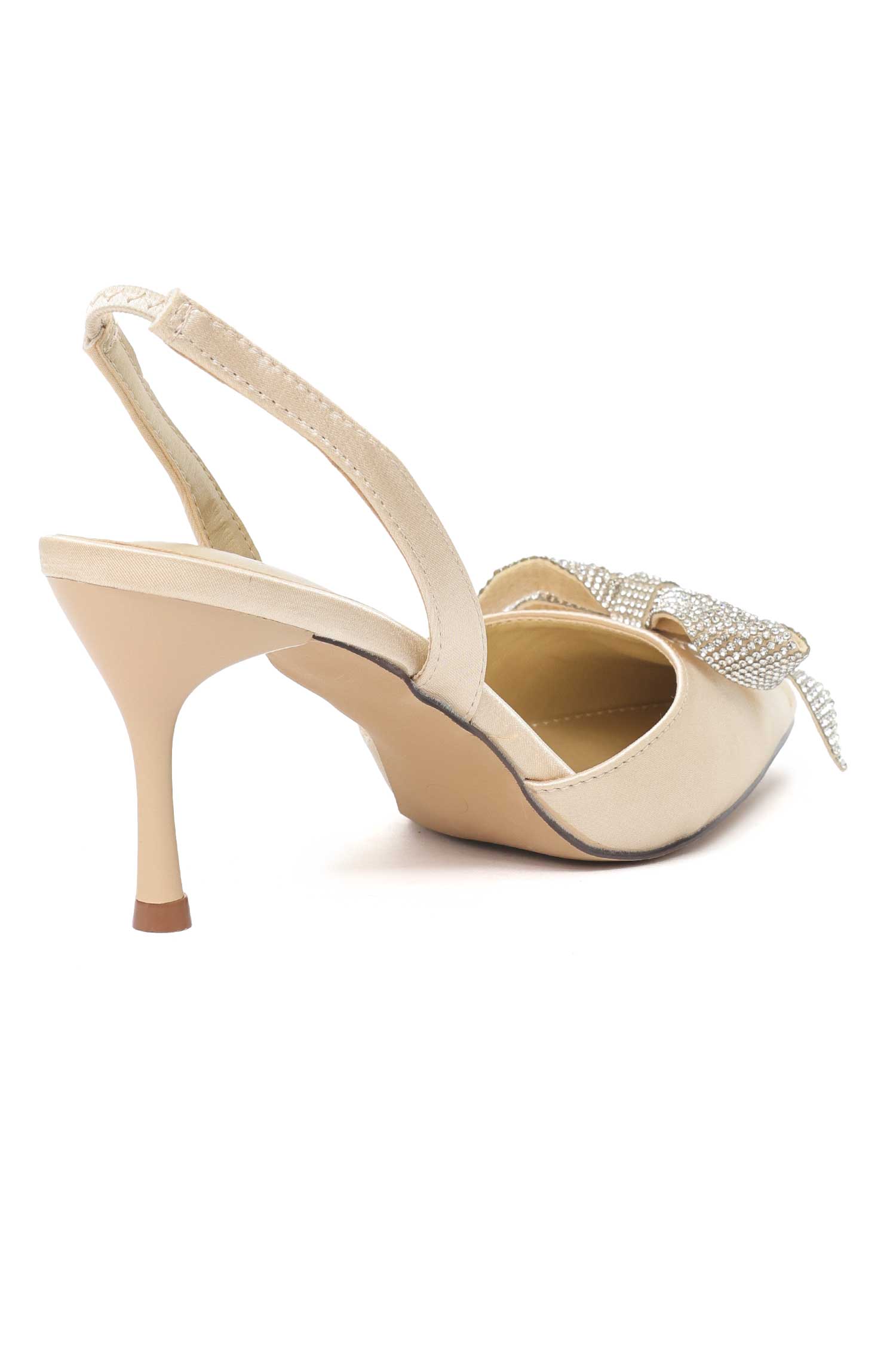 Luxe velvet finish meets a bold structured bow in this slingback heel