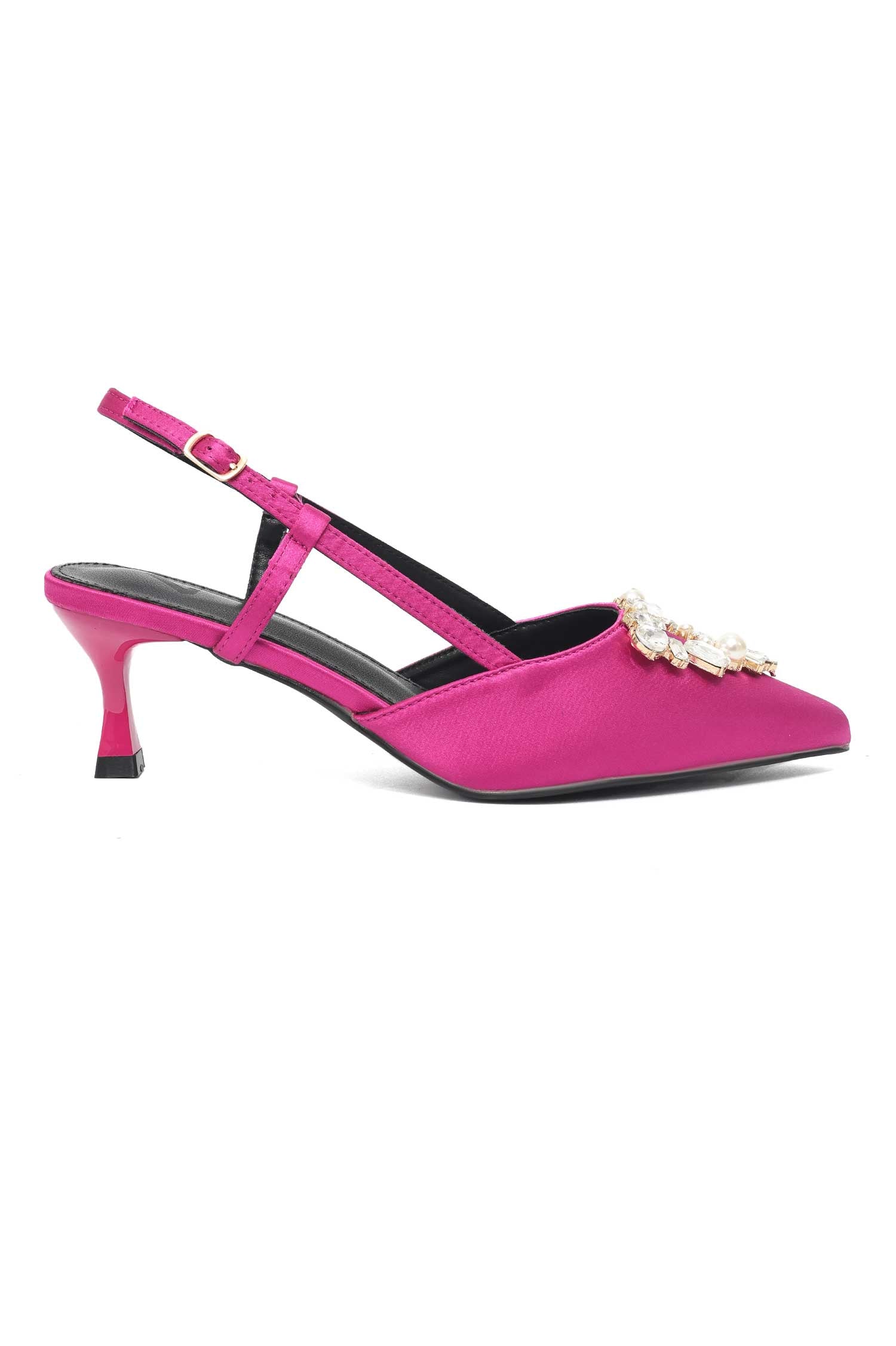 Adorned with radiant pearls and glistening crystals, this pointed-toe kitten mule is a showstopper. The 3D embellished bow adds a touch of couture charm. Ideal for formal evenings or luxe festive wear.
