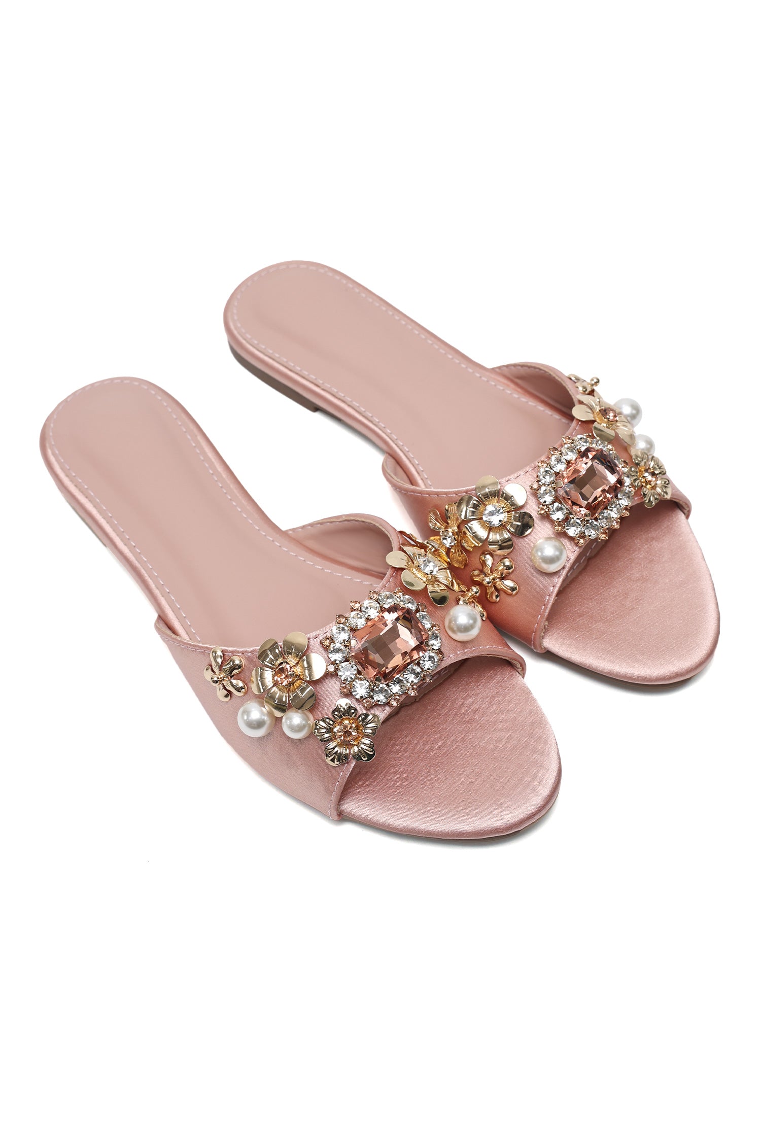 CELESTIAL BLOSSOM EMBELLISHED SLIDES-PINK