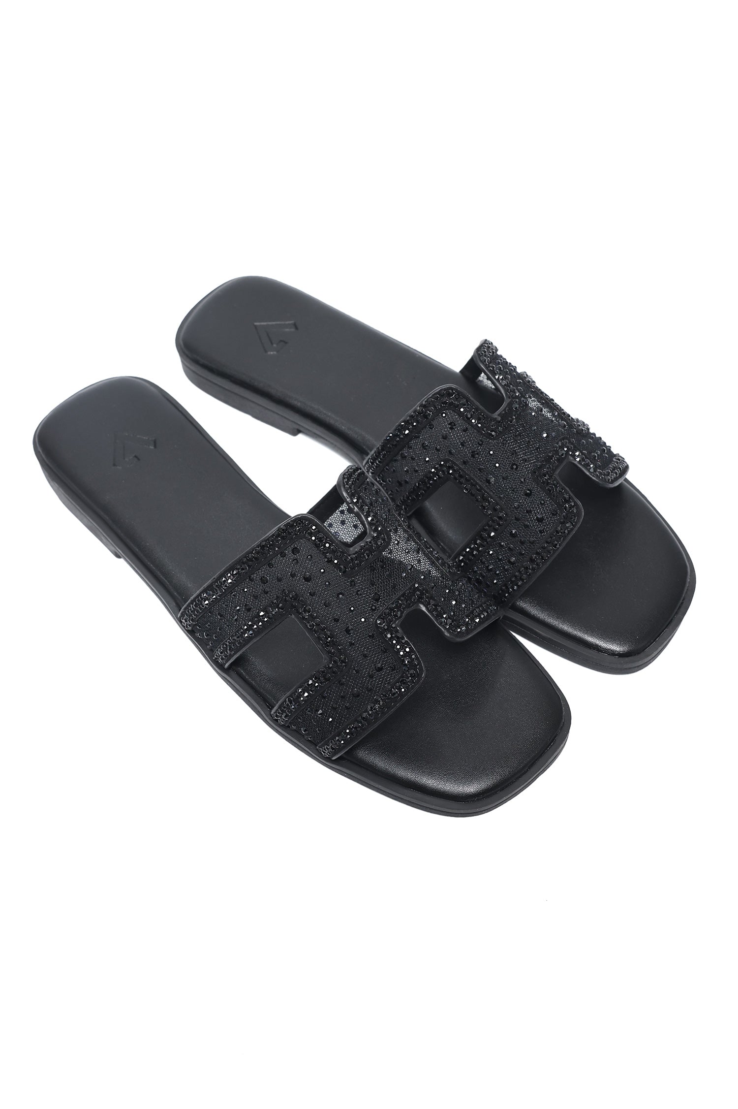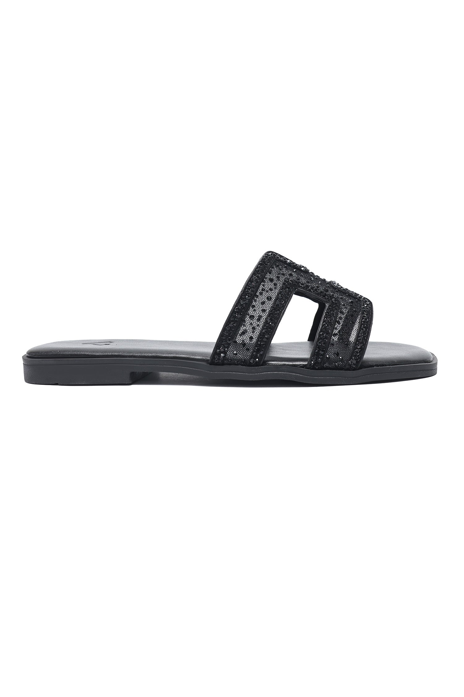 EMBELLISHED ORNATE CUT SLIDE-BLACK