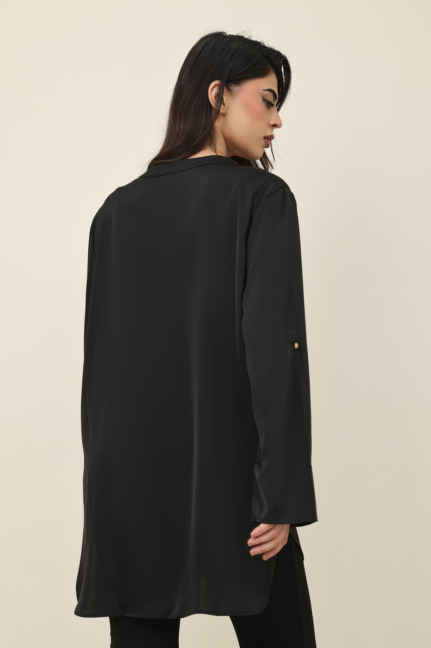 Defined by its relaxed fit and singular front detail, this top radiates simple sophistication. Crafted in a light, buttery fabric that moves with ease. A quiet statement for timeless wardrobes.