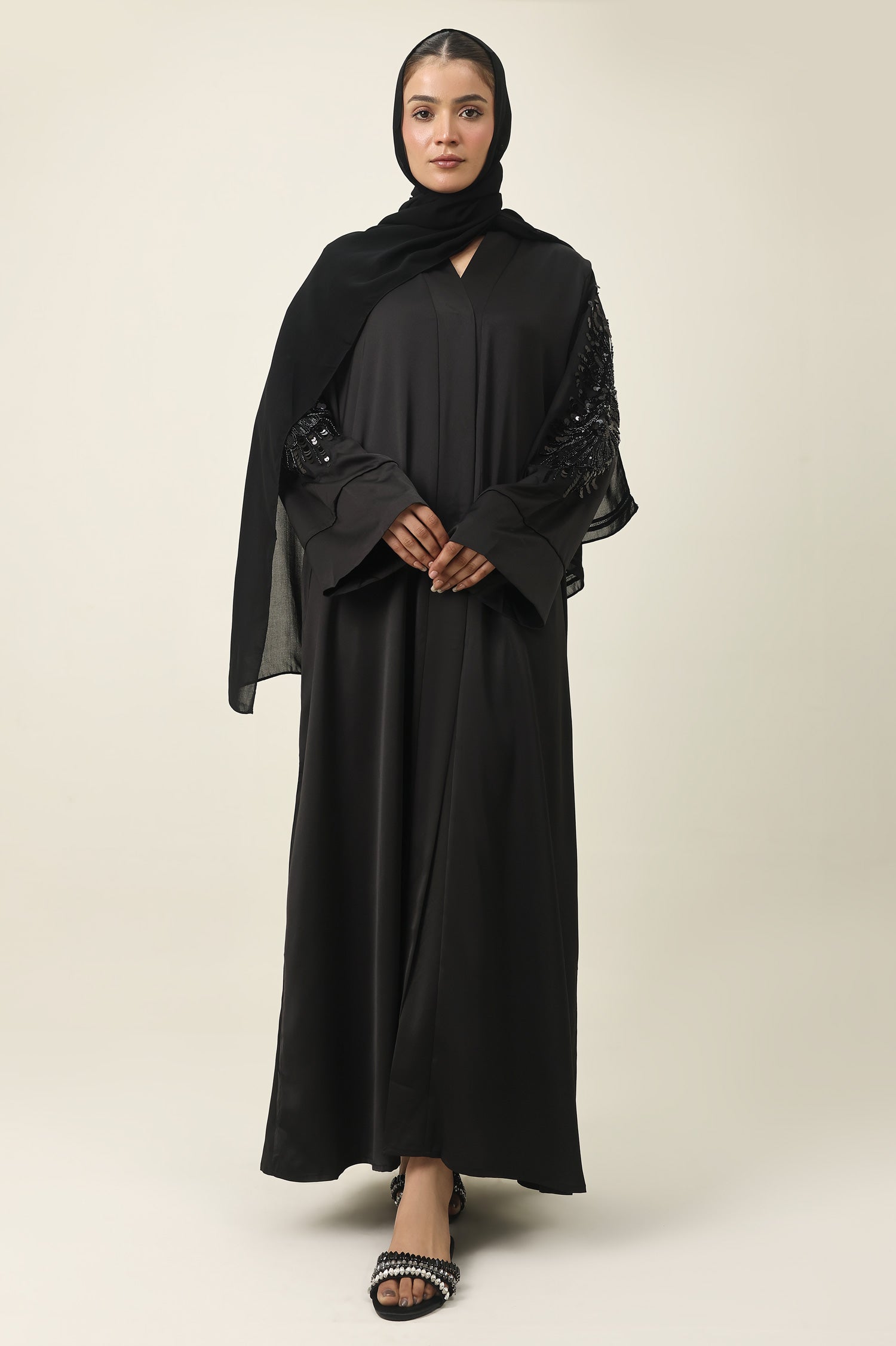 CLASSIC WIDE CUFF EMBROIDERED ABAYA-BLACK