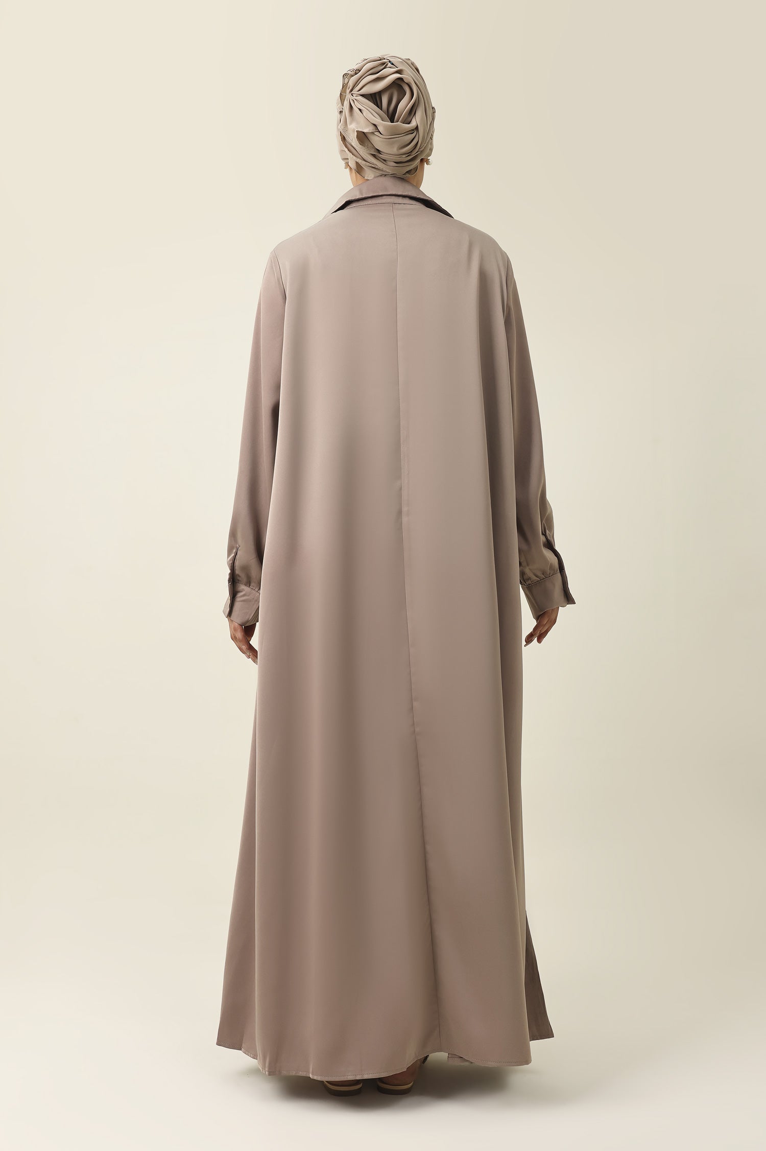 A beautifully elongated silhouette designed with a graceful floor-length fall that enhances movement. The relaxed structure creates effortless elegance while maintaining modest refinement.