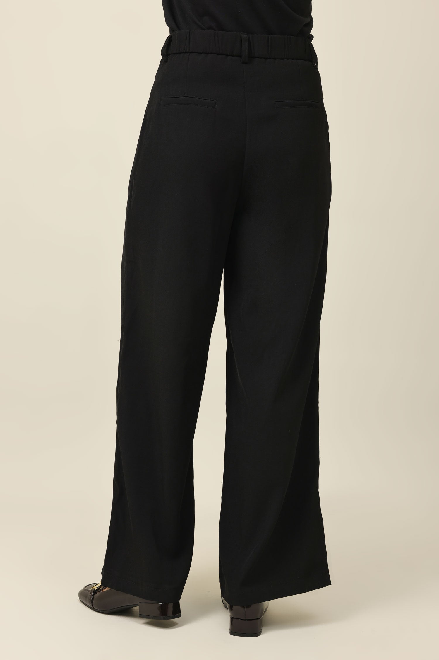 Tailored with a relaxed silhouette and front pleats, this trouser blends everyday ease with elevated polish. The high-rise waist and crisp fall lend refined structure. A timeless staple in soft-flowing suiting fabric.