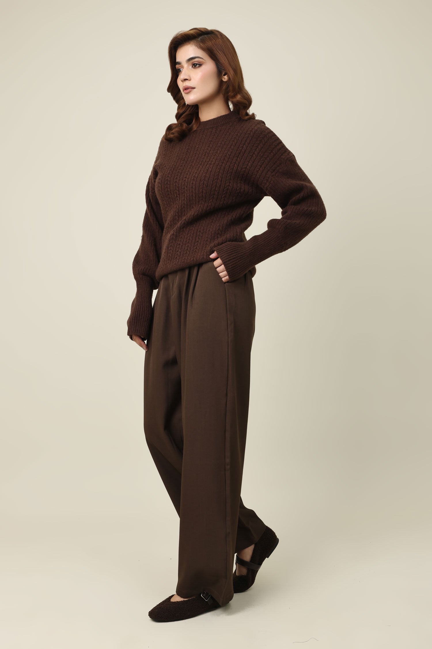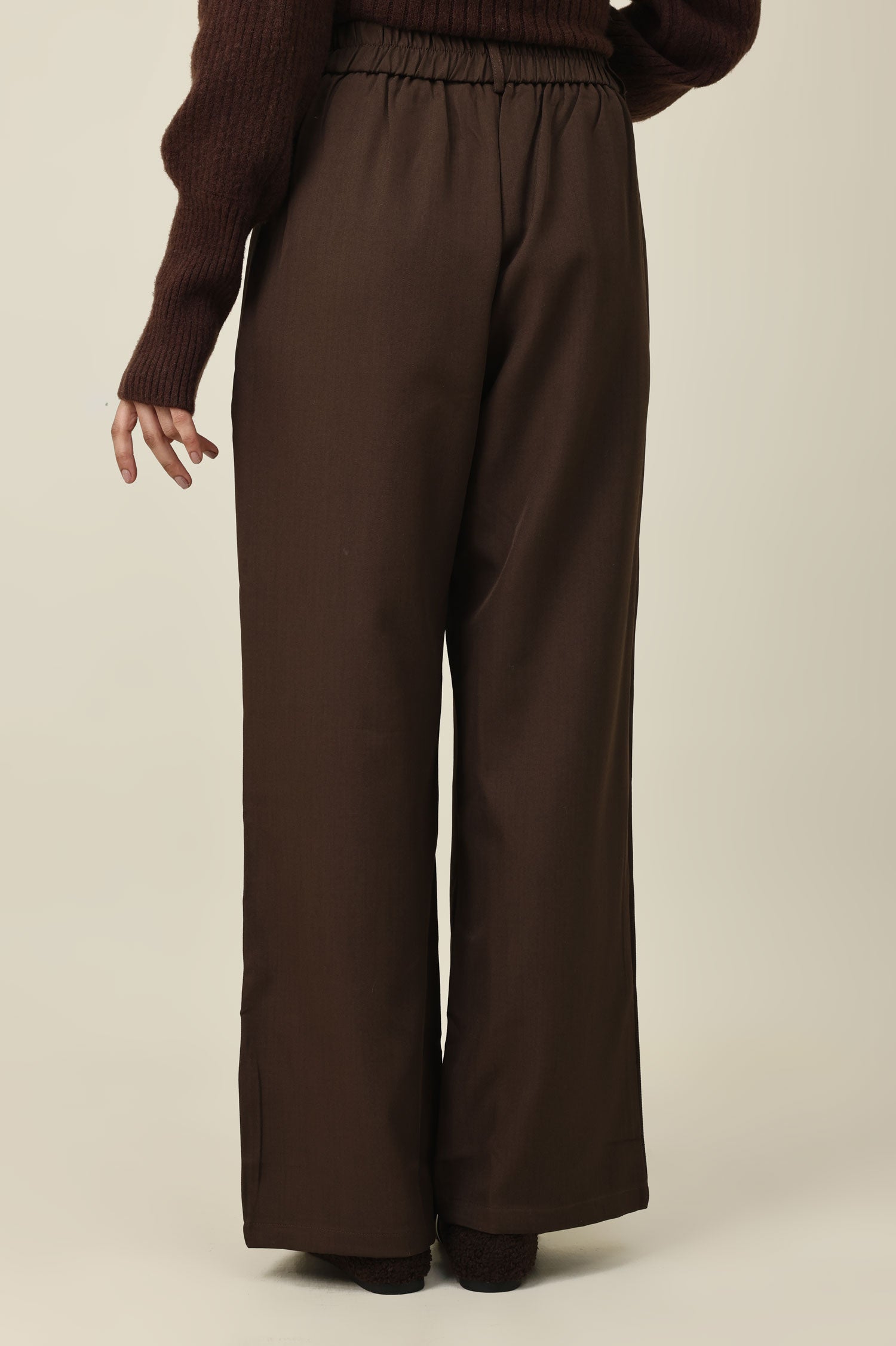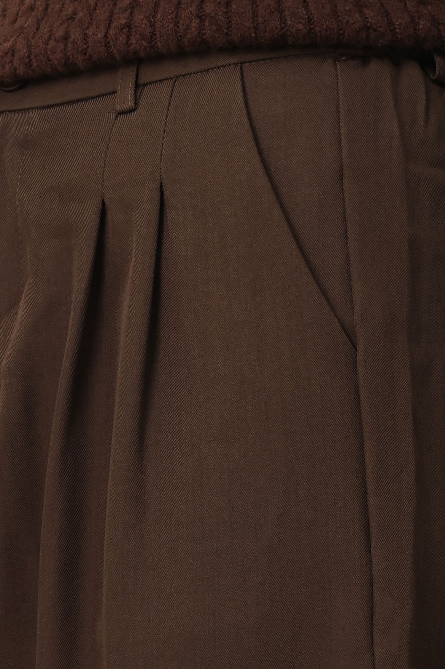 Tailored with a relaxed silhouette and front pleats, this trouser blends everyday ease with elevated polish. The high-rise waist and crisp fall lend refined structure. A timeless staple in soft-flowing suiting fabric.