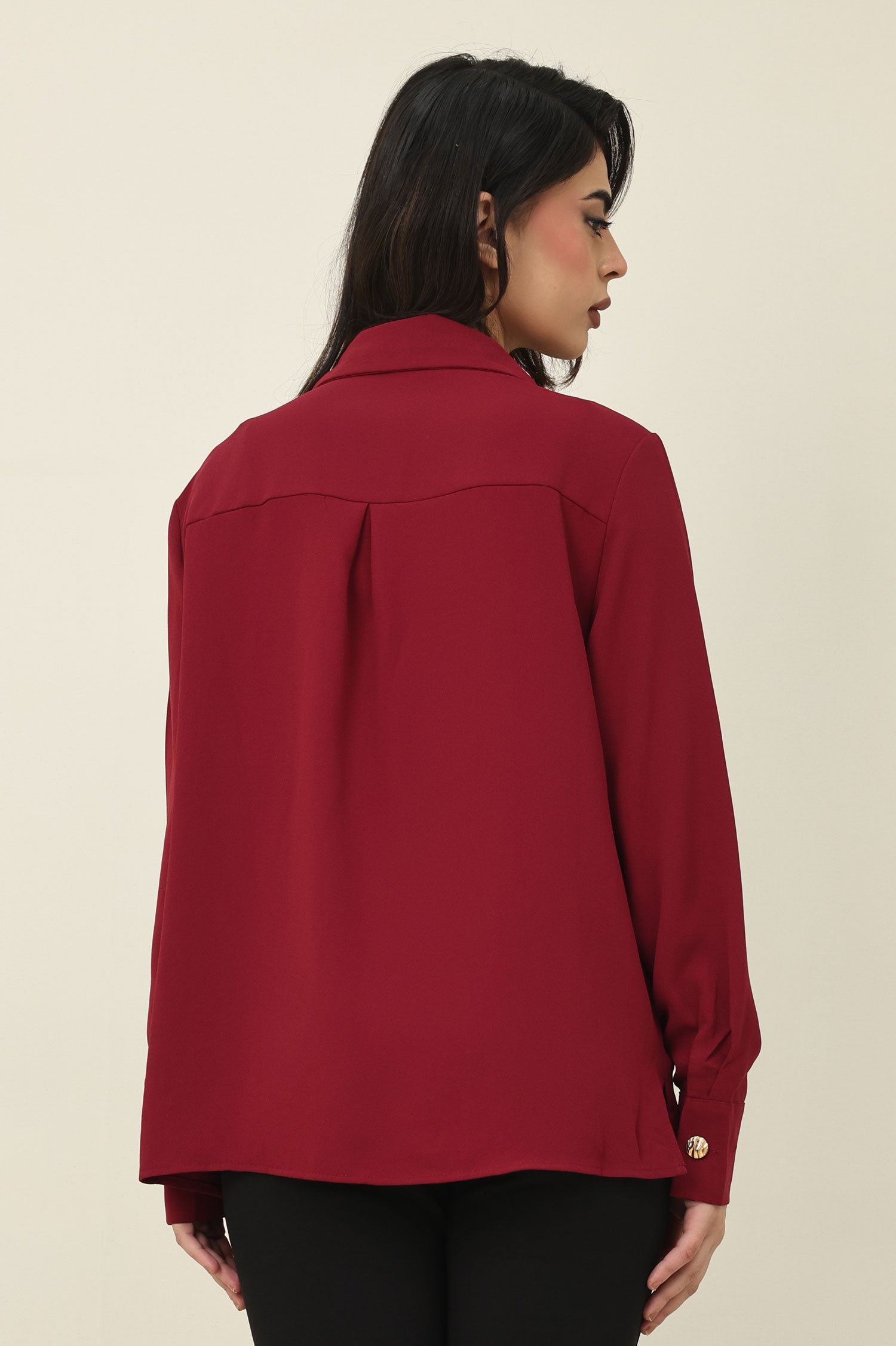 CLASSIC BUTTON POISE SHIRT-BURGUNDY