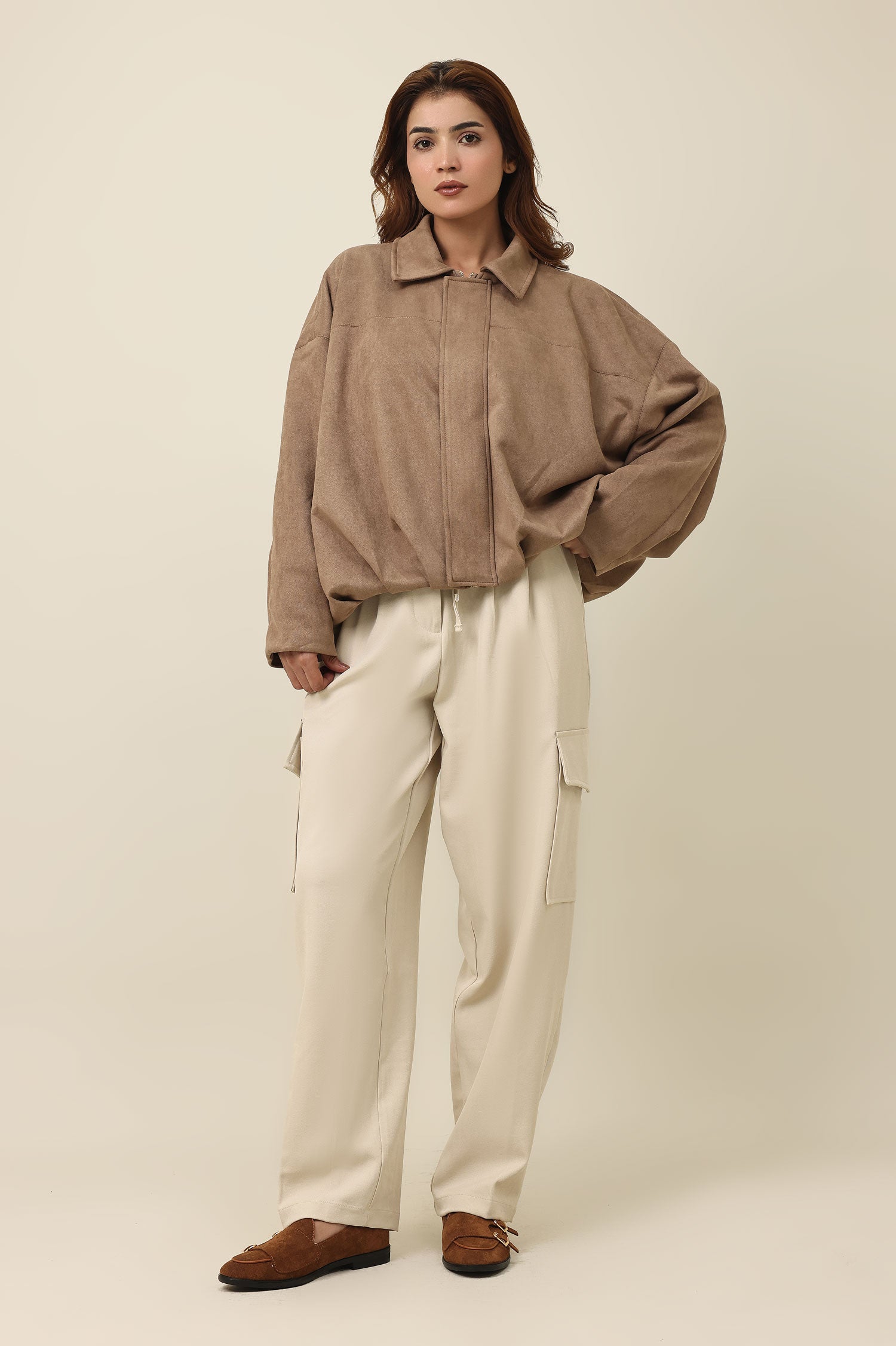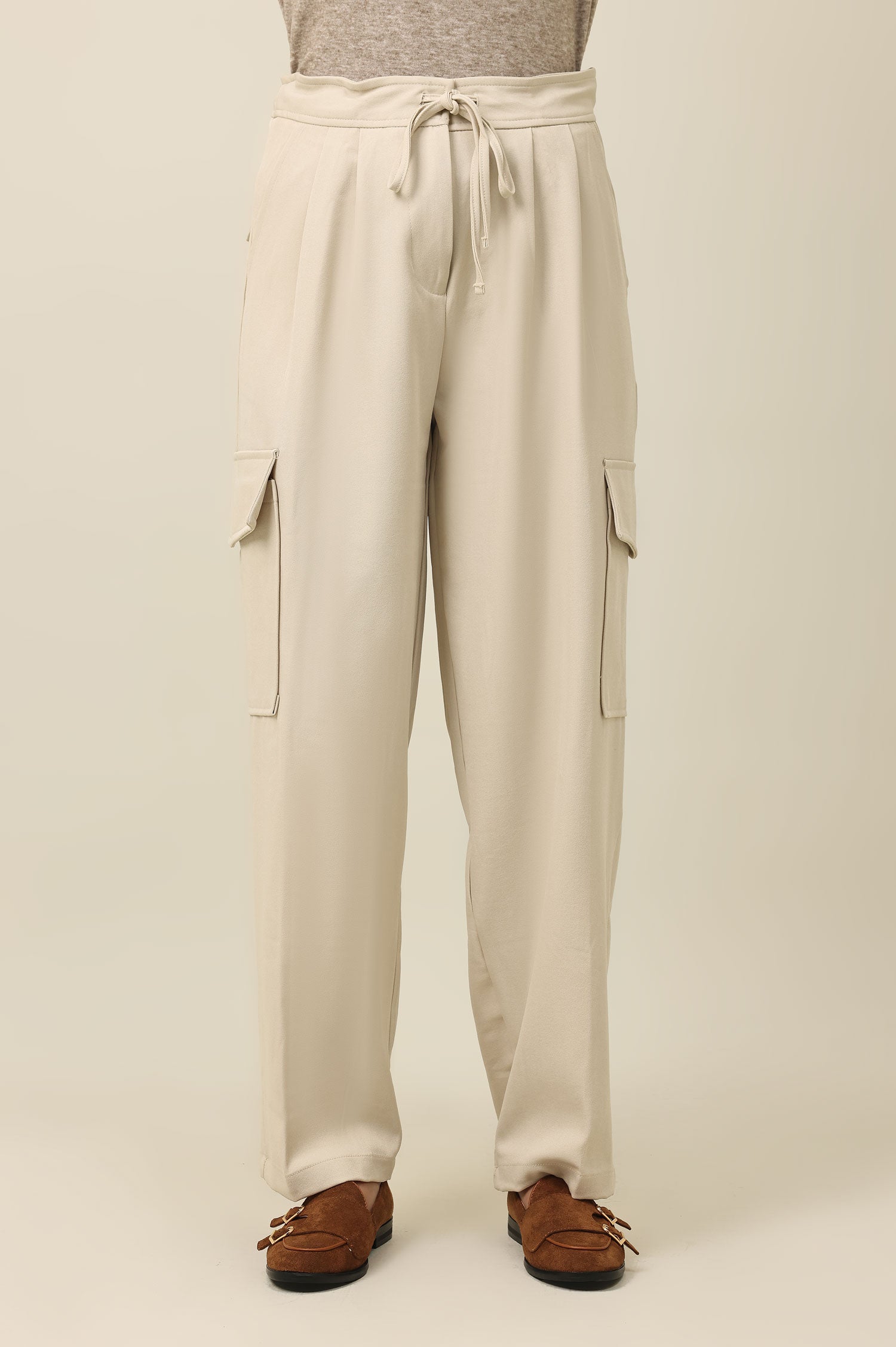 The pants showcase a smooth surface that enhances their gentle, relaxed fall.