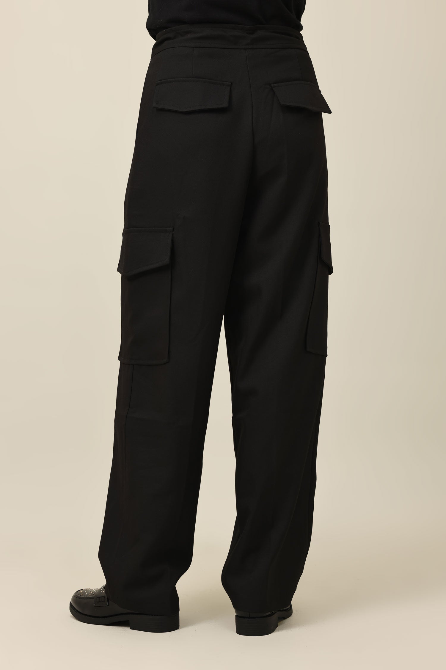 The pants showcase a smooth surface that enhances their gentle, relaxed fall.
