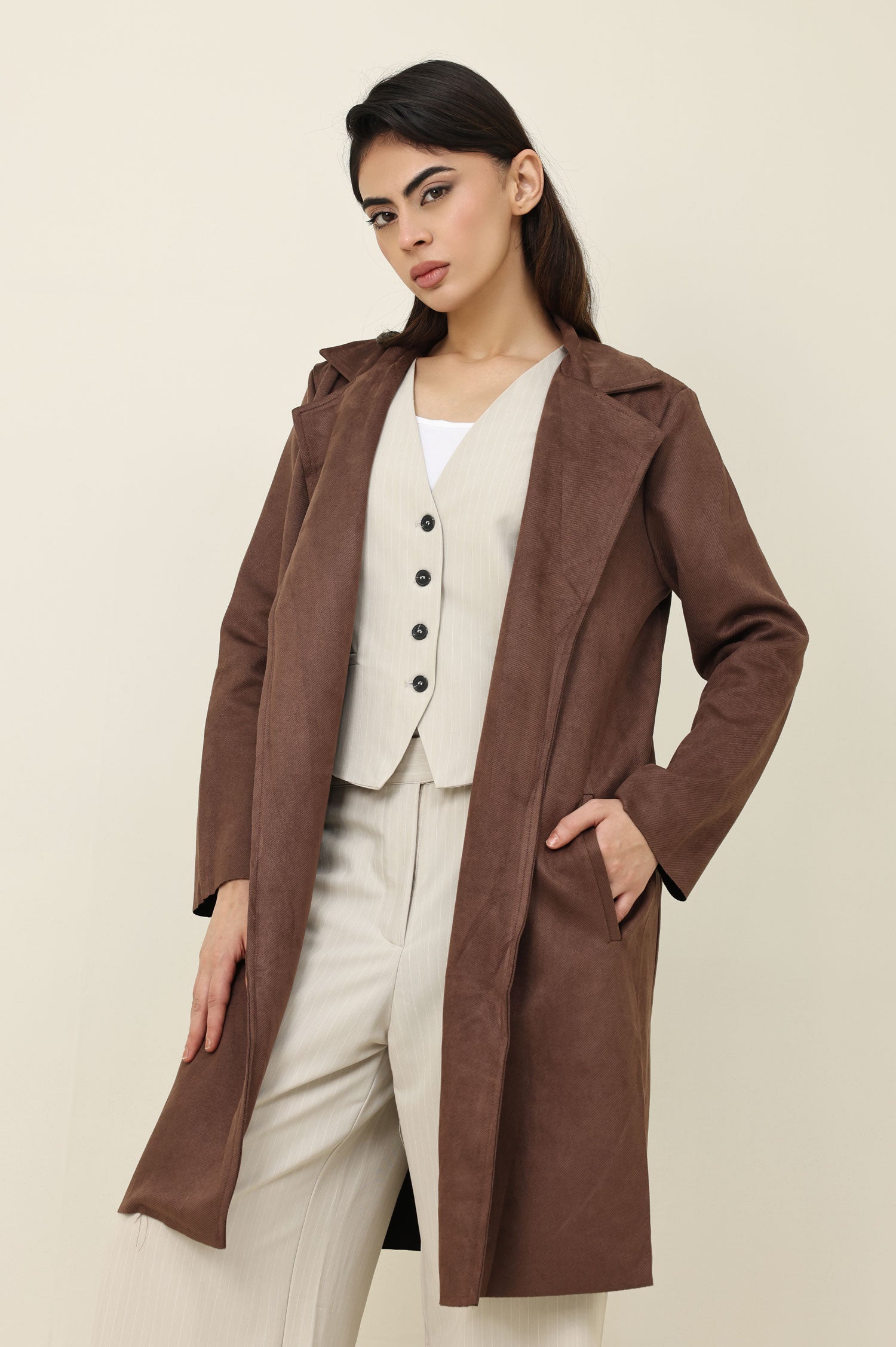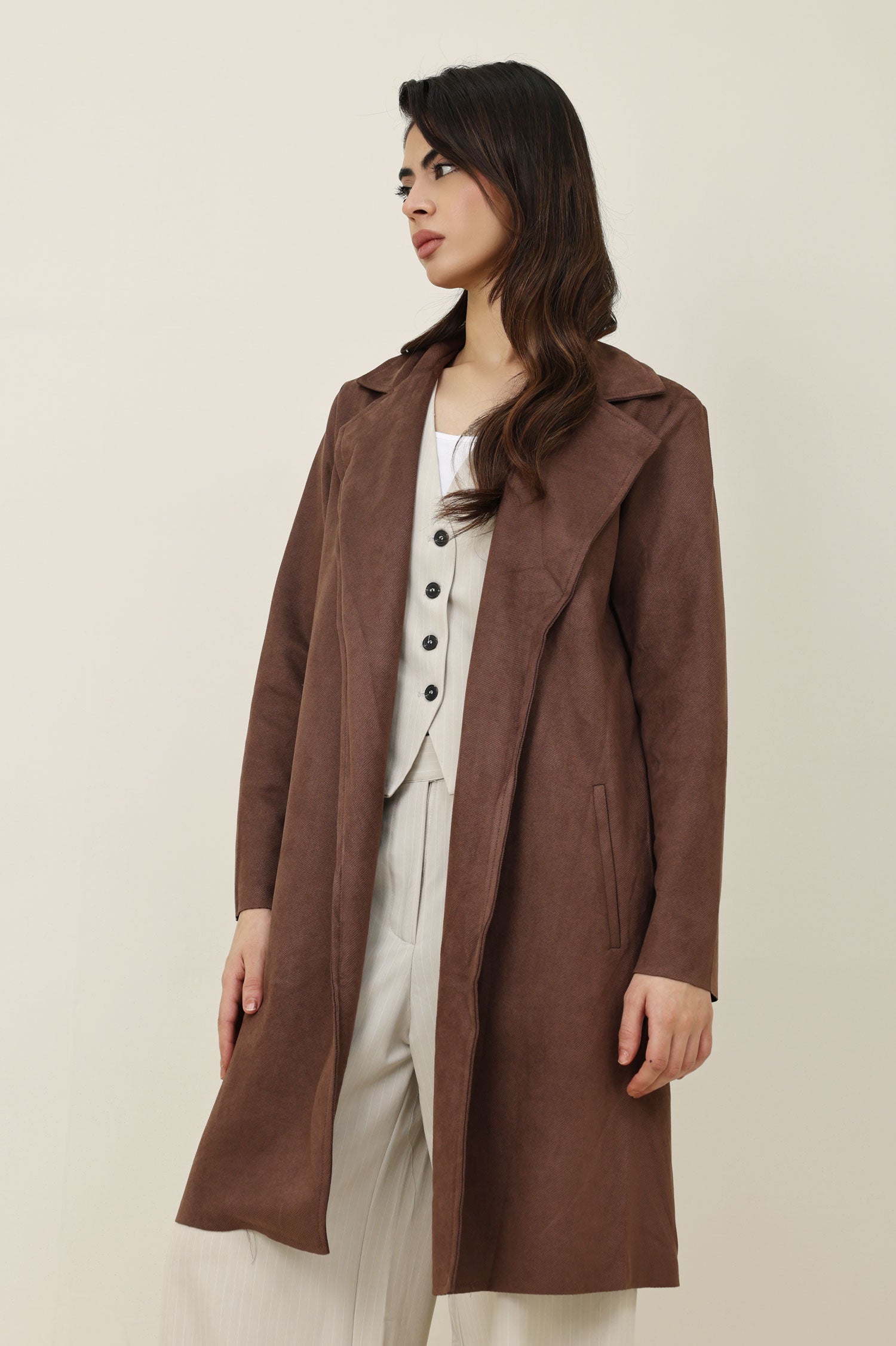 SUEDE OVERCOAT-COFFEE