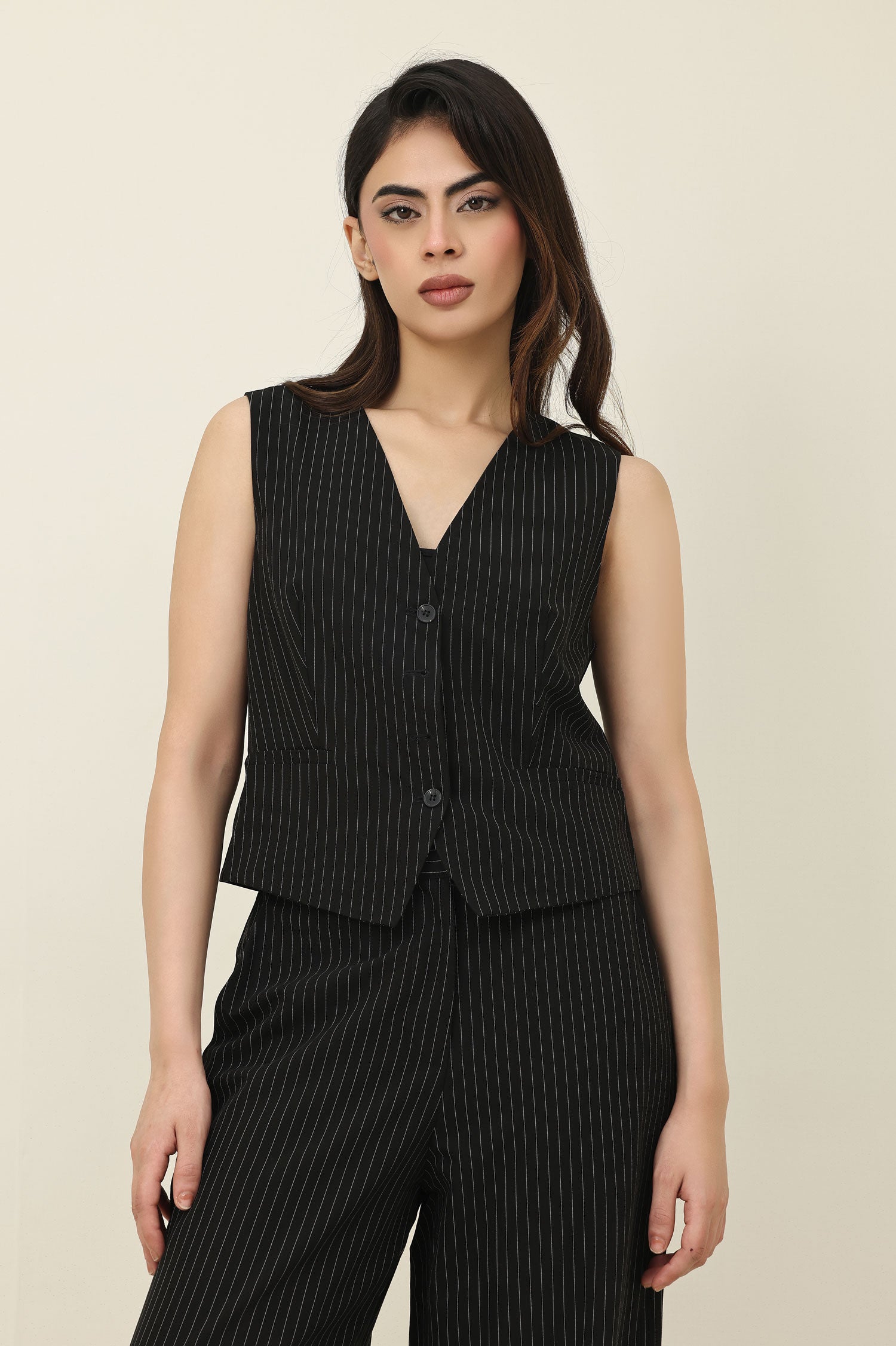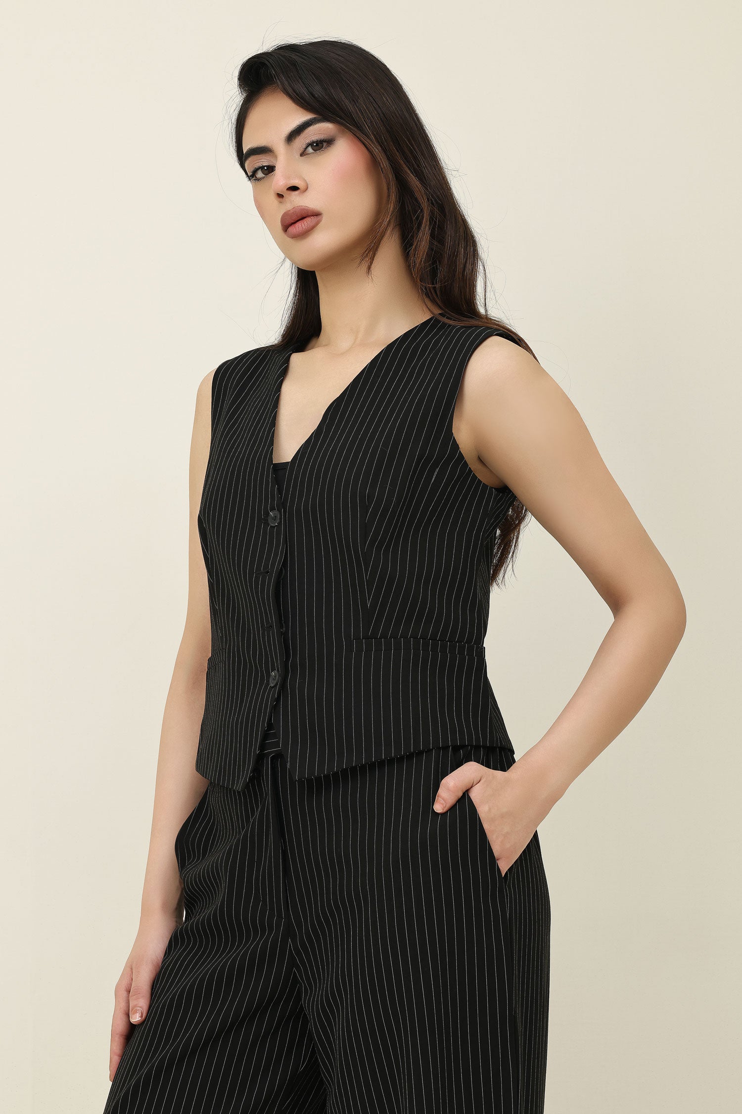 SLEEK STRIPES WAISTCOAT-BLACK