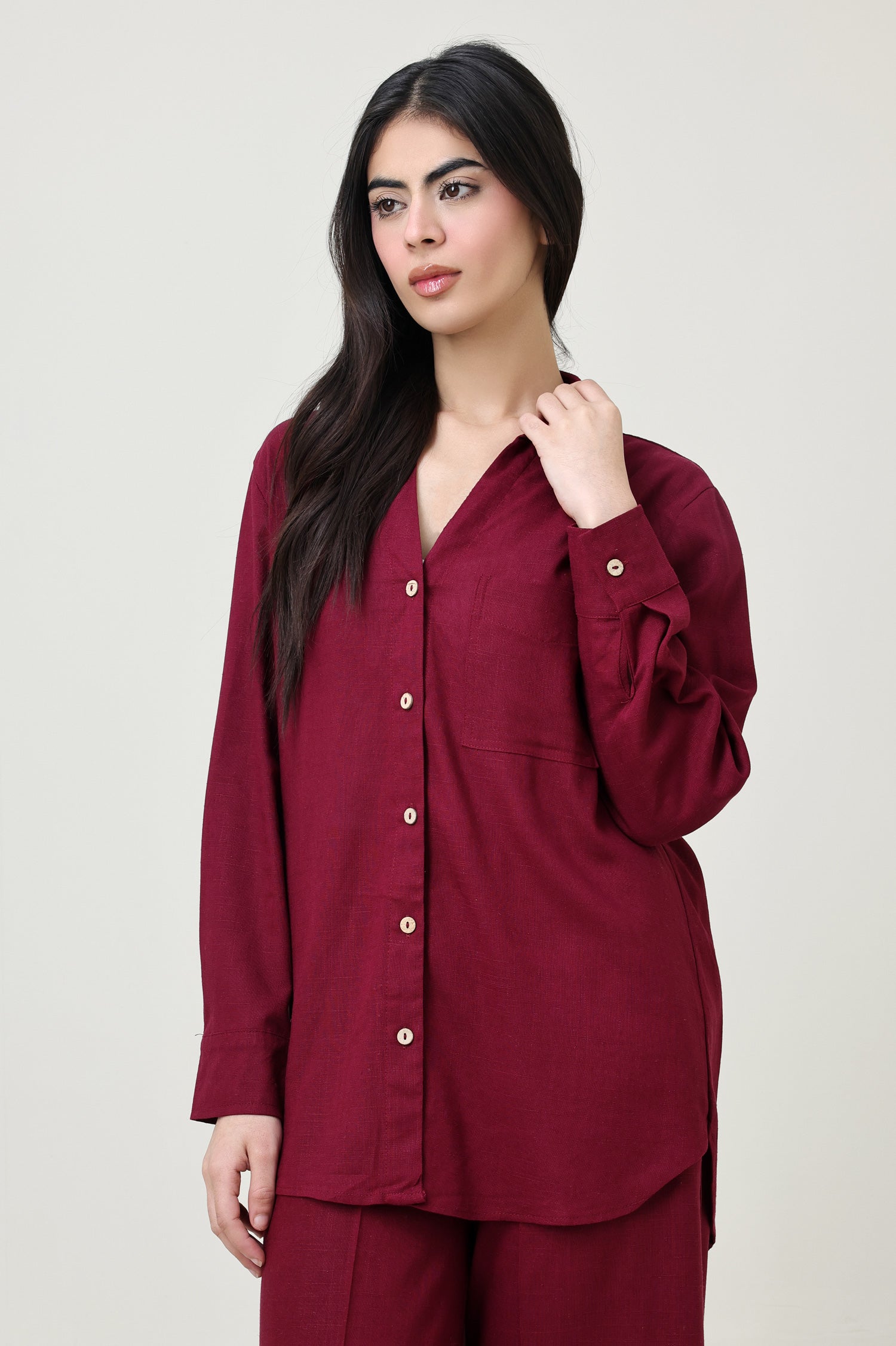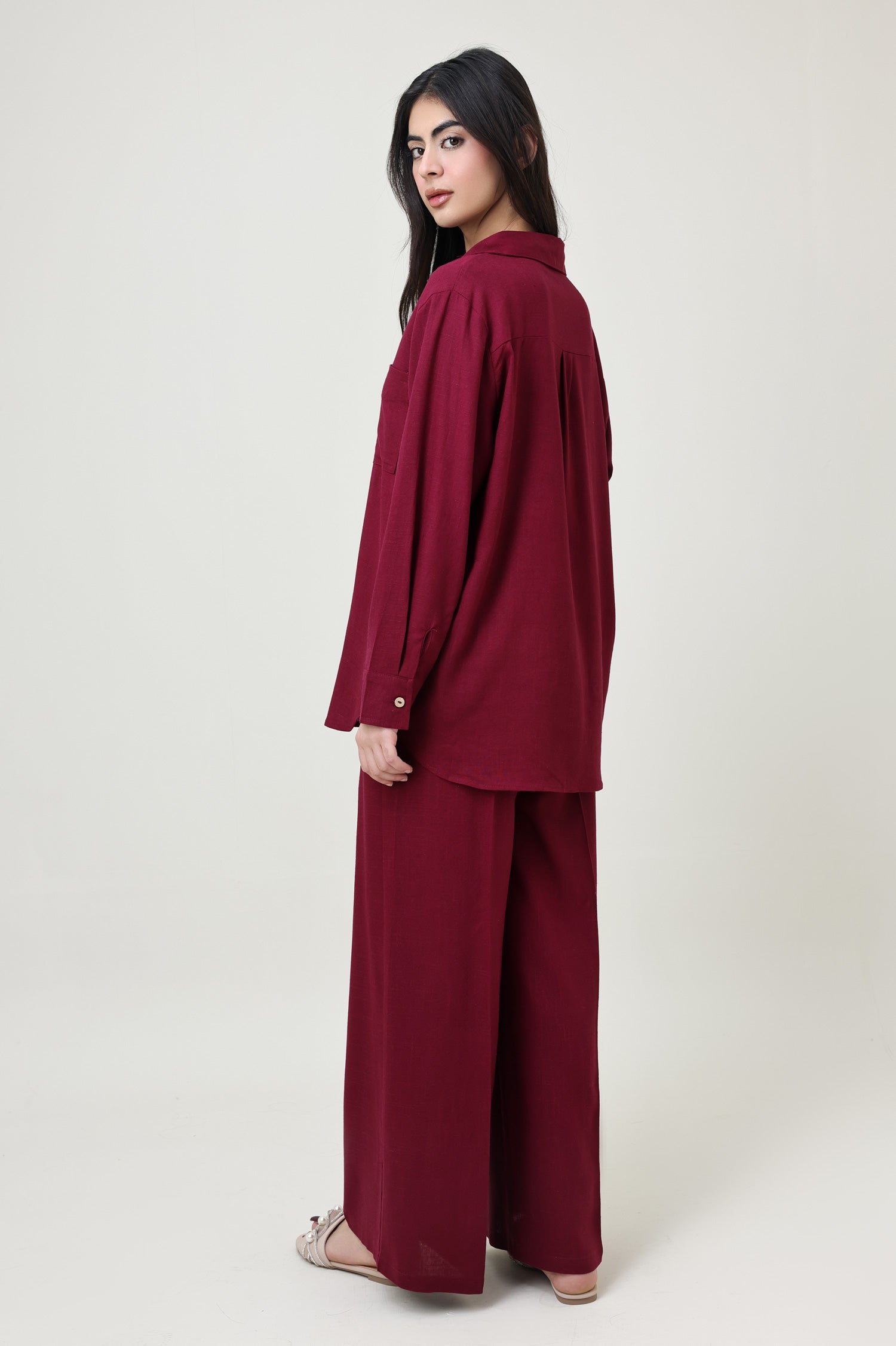 Embrace timeless elegance in this deep-hued linen co-ord set, designed with a breezy button-down shirt and fluid wide-leg pants. Crafted for supreme comfort with a minimalist finish, this ensemble transitions effortlessly from casual coffee runs to elevated evenings.