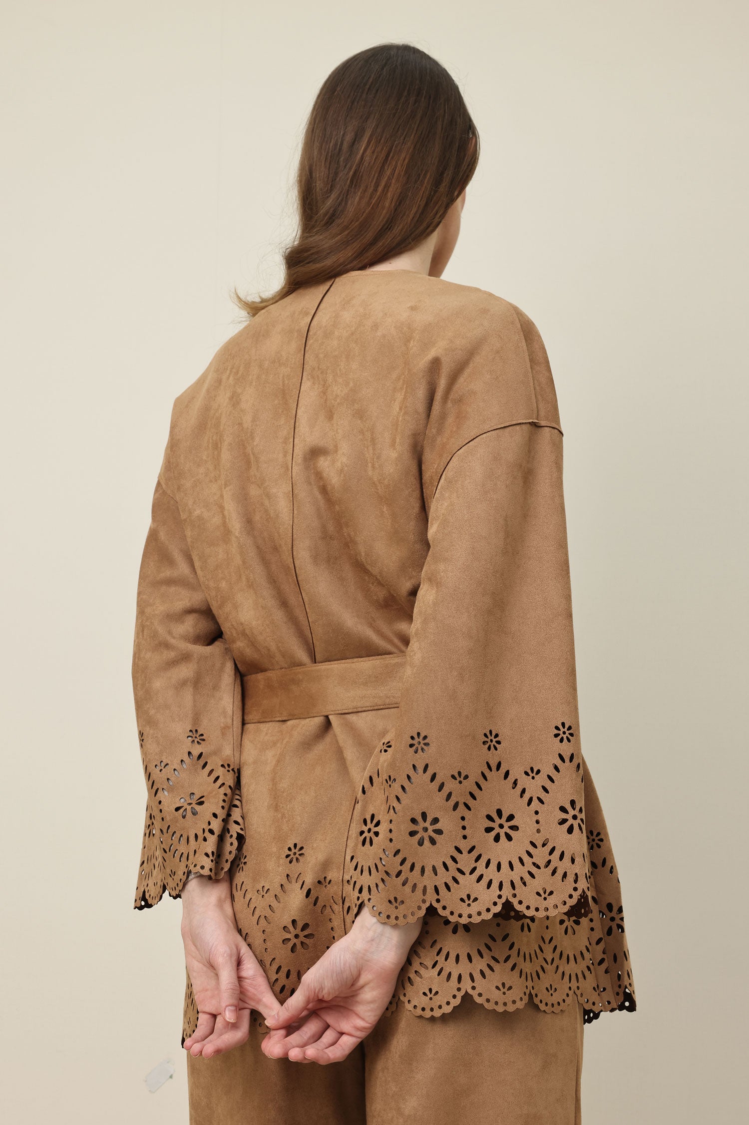 ELEGANCE LASER CUT BELTED SHIRT-BROWN