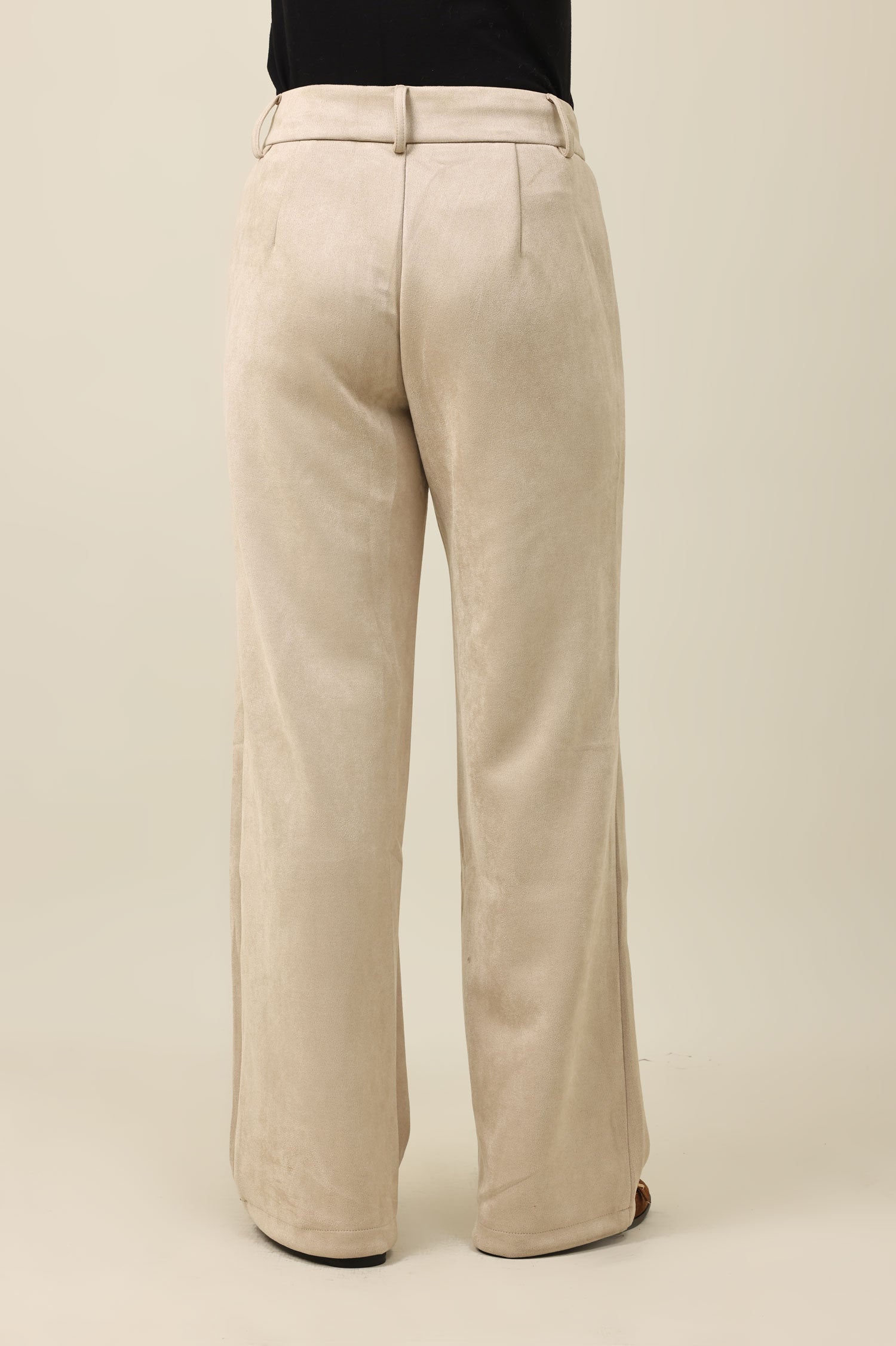 Form meets comfort in suede-textured tailoring. Easy waist and refined silhouette. A wardrobe builder for effortless looks.