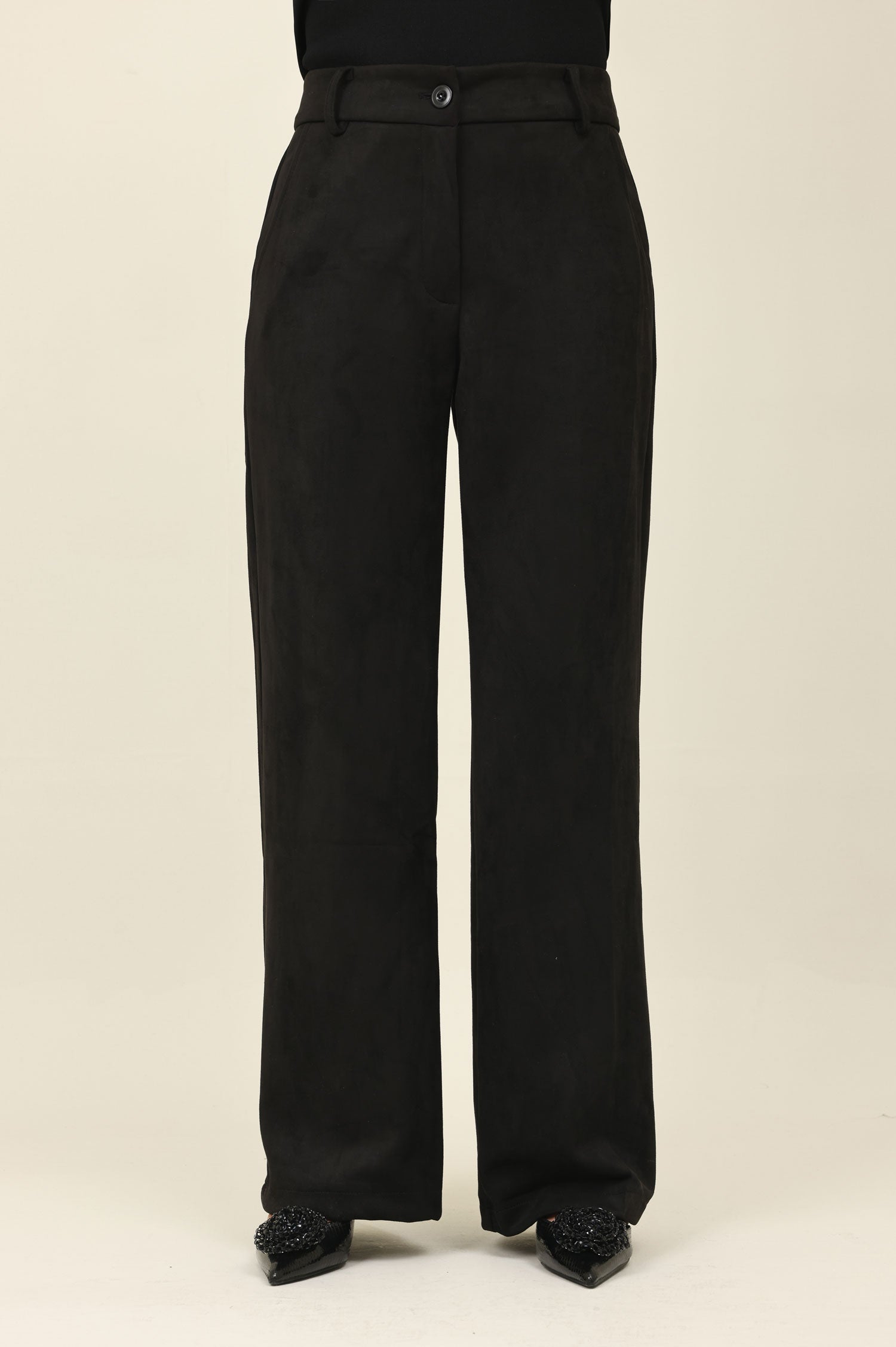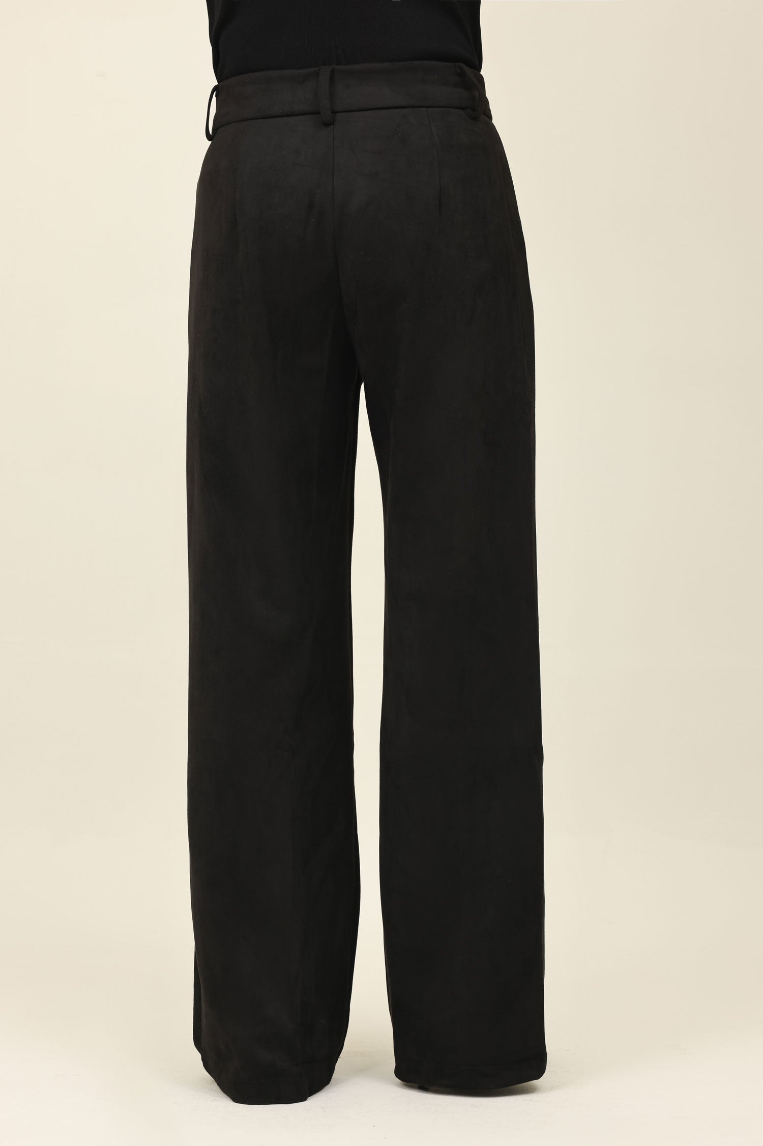 Form meets comfort in suede-textured tailoring. Easy waist and refined silhouette. A wardrobe builder for effortless looks.