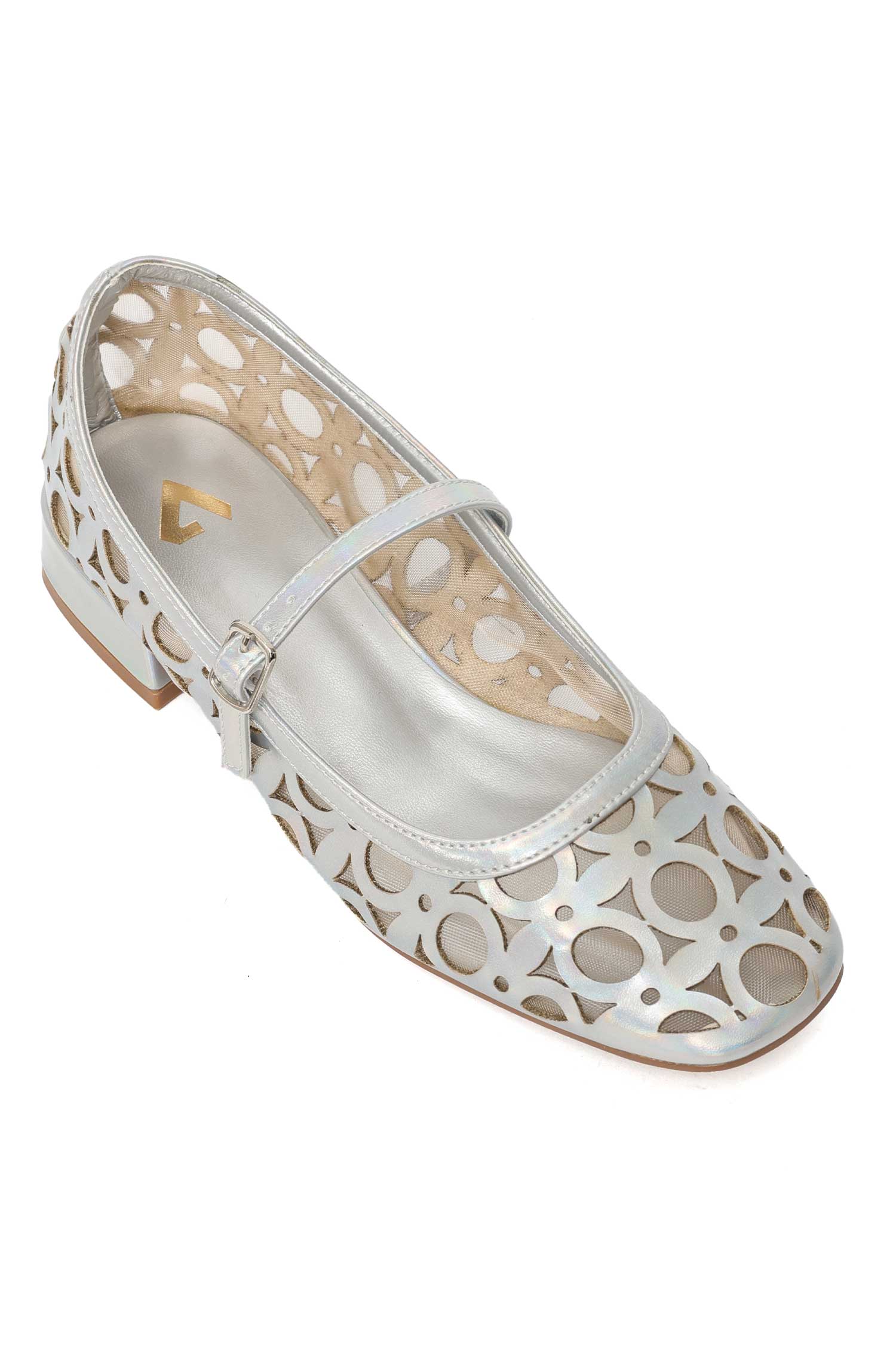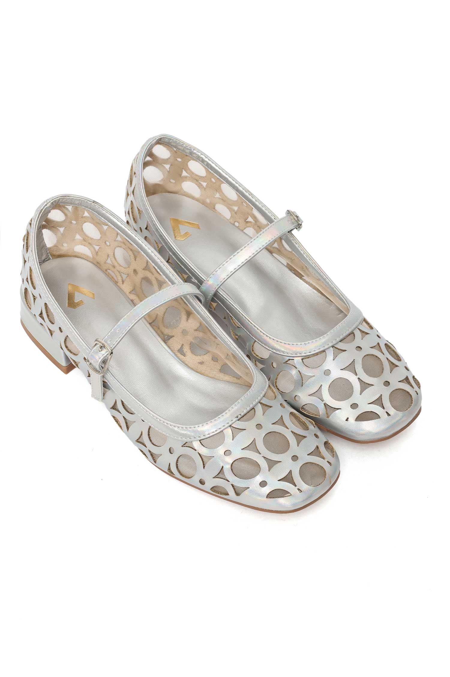 This pair combines whimsical cut-outs with a neutral tone for versatile wear. The strap adds vintage flair while the openwork design ensures breathability. Perfect for both daywear and light occasion looks.